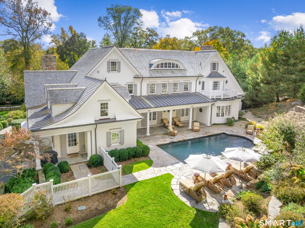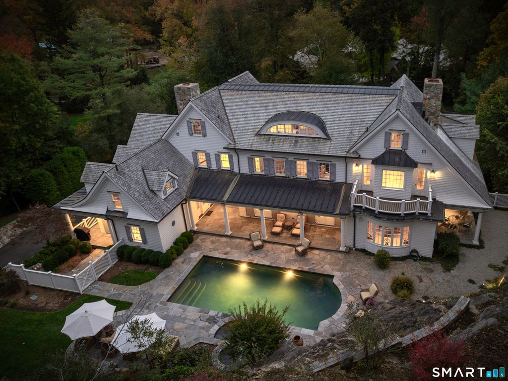 10 Cross Road is custom built and thoughtfully designed by Louise Brooks & Artisan Builders. No expense has been spared...extensive millwork and moldings, soaring 10-foot and cathedral ceilings! In the heart of the private Tokeneke Assoc. on a hilltop with southern exposure, multiple French doors create a seamless indoor-outdoor lifestyle. Enjoy a custom pool, spa, & waterfall beautifully integrated into lush gardens and refined hardscaping. Meticulously maintained, this private backyard offers a true oasis - you won't want to leave! A chef's kitchen appointed with Wolf and Sub-Zero appliances, a dble. island and a cozy dining area with expansive windows and fireplace is open to a grand family room. Formal living and dining room with entertaining butlers parlor and mature office complete the main floor. Upstairs, the spacious primary suite offers a sitting area, walk-in closets and serene bathroom. 3 ensuite bedrooms provide luxurious accommodations. The 3rd floor offers a large playroom space with 2 adjacent bedrooms sharing a jack-and-jill bathroom. Additional amenities include a 3-car heated garage, theater, gym, sauna and partial heated driveway. Many recent improvements - including a new cedar roof, newly paved driveway, full exterior painting, new front stone wall, and pool enhancements - further elevate the home's turnkey appeal. Come experience the beauty, history, and prestige of Tokeneke at its finest, a private coastal community just a short distance from town.