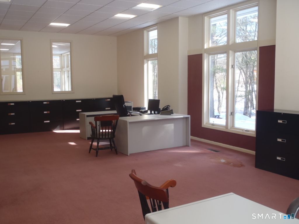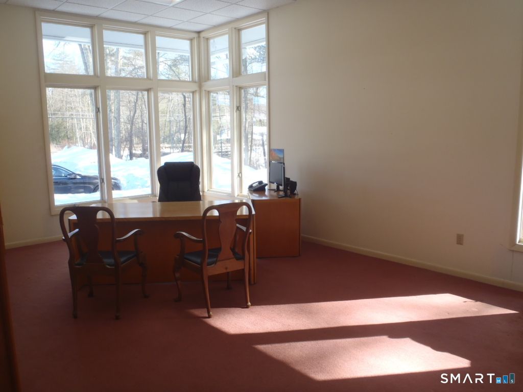 Very open flexible Floor plan in this stunningly Bright & Sunny Brookside Center Office Space with spacious high ceilings. Tranquil setting with view from every oversized window. Walkout to picnic area with babbling brook and seating. Kitchen Space, meeting space, easily accessible and abundant parking. Basement with various accesses, has spiral staircase with an additional finished room, tremendous storage space. A very desirable area in a professional Center. Close to major Roads, Shopping, Dining, Airport, Train, Bus.