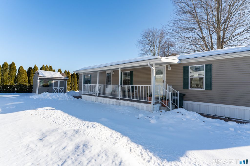This inviting 2 bed, 1.5 bath home offers comfortable one-level living with a functional open layout. The bright eat-in kitchen features ample cabinetry and natural light and flows into a cozy living area, perfect for everyday living or entertaining. Additional highlights include central air and a large outdoor storage shed for seasonal items or tools. Enjoy morning coffee or evening relaxation on the charming front porch. Conveniently located near shopping, dining, and major highways, this well-kept community offers low-maintenance living in a peaceful, friendly setting. Amenities include a pool and club house. Mobile home financing or cash purchase required.
