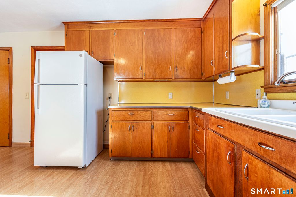 Opportunity awaits in this 3 bedroom, 2 full bathroom ranch nestled in a quiet West Hartford neighborhood. With solid bones and original hardwood floors throughout the main level. This home is ready for your personal vision and updates. Enter through the foyer into a spacious living room featuring a fireplace and large windows. The generous eat-in kitchen has ample cabinet and counter space, newer appliances and plenty of room for large gatherings. The main level offers three comfortable bedrooms and a full bathroom, providing convenient one level living. The lower level expands your possibilities with a second fireplace, full bathroom, dedicated laundry area, and a workshop space perfect for hobbies, projects, or additional storage. Whether you envision a family room, recreation space, or entertaining area, there is room to make it your own. A one car detached garage adds convenience, while the location truly shines just minutes to Blue Back Square, West Hartford Center, shopping, dining, and easy access to I-84 and I-91. A fantastic opportunity to create something special in a highly desirable area.