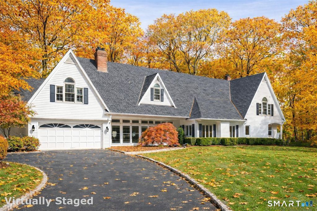 Welcome to 25 Powder Horn Hill Road-a stunning oasis set on 2.79 level, beautifully landscaped acres offering exceptional privacy, sun-filled interiors, and a resort-style backyard just minutes to town. This 4-bedroom, 4-bath Colonial offers 4,144 sq ft with a versatile floor plan and multiple living spaces designed for modern living. A circular driveway creates a gracious arrival. Inside, the slate-floored living room features a cozy fireplace, floor-to-ceiling windows, and French doors that open to the backyard. The dining room is rich in character with hardwood floors, built-ins, and a second fireplace-ideal for entertaining. The eat-in kitchen is wrapped in floor-to-ceiling windows with serene views, and French doors make indoor-outdoor living effortless. Outside, enjoy a stunning pool with attached spa and waterfall, surrounded by mature plantings and generous space for dining and lounging. A large first-floor primary suite with walk-in closet and ensuite bath plus a first-floor bedroom offer flexibility. Upstairs, two vaulted-ceiling bedrooms, two full baths, a den, and an oversized great room complete the home. Other features include central air, a 2-car garage, sprinkler system, shed, and full-house generator. All close to town, train and commuter routes. This home is a must-see-don't miss it!