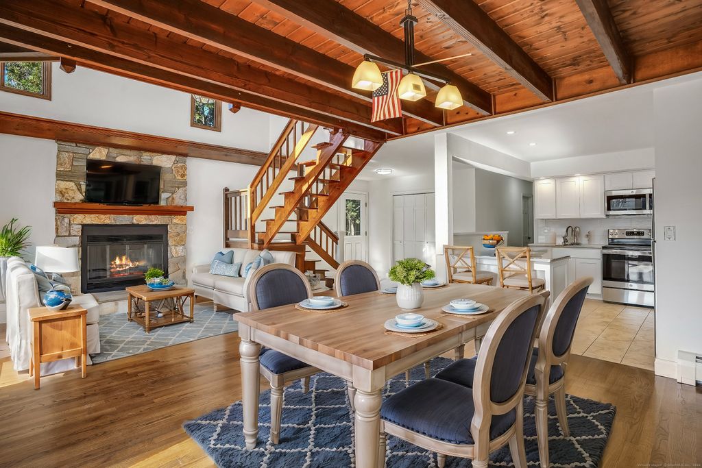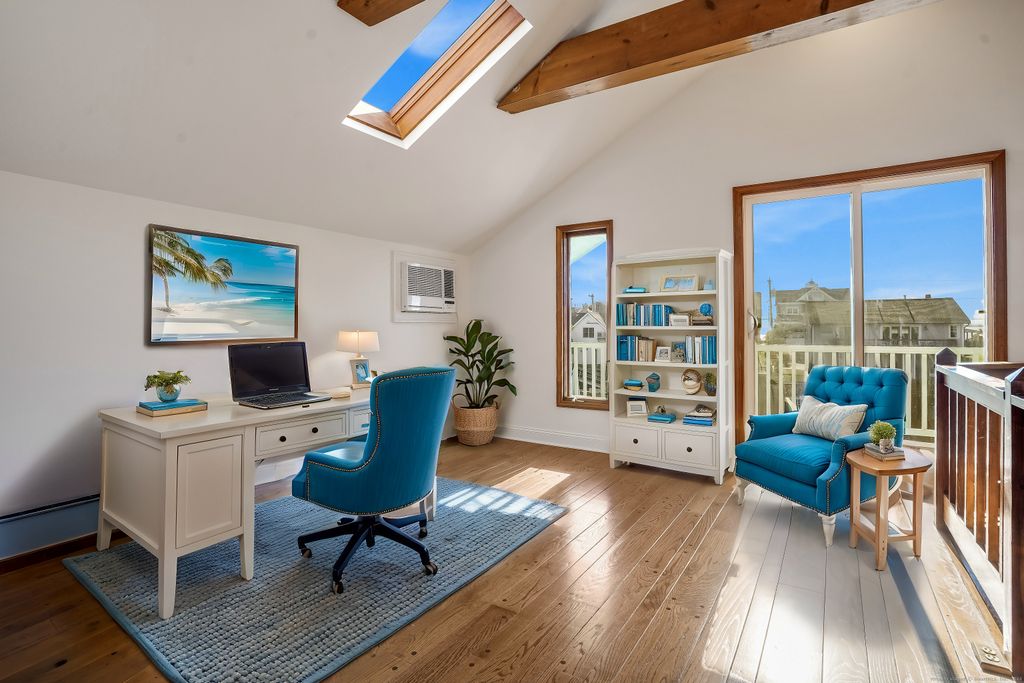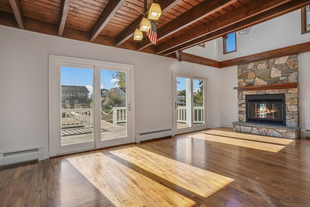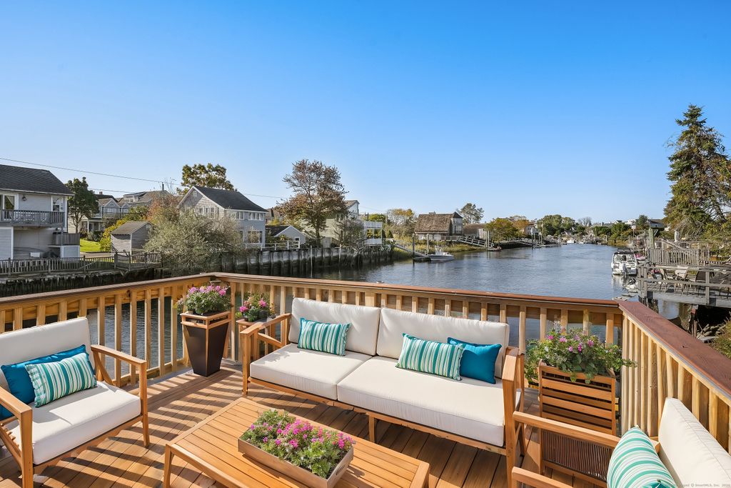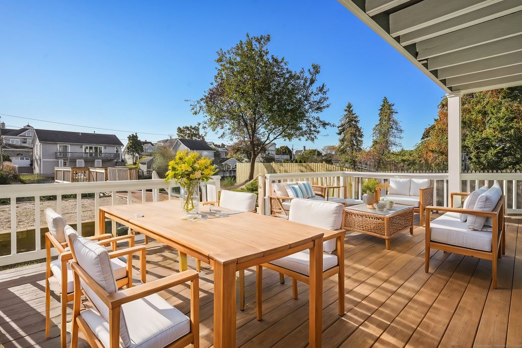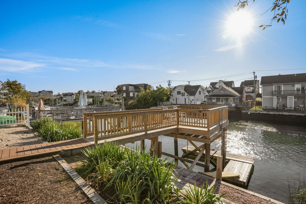 Hard to find direct waterfront rental home featuring private dock, Long Island Sound access & deeded Fairfield beach access. Full home renovation recently completed including new kitchen & baths, freshly painted interior/exterior, shining HW floors & new efficient mechanicals. Bright open floor plan includes spacious kitchen, dining area & living room with fireplace & soaring vaulted ceiling. Wall of glass doors leads to inviting deck. Main level bedroom, full bath & laundry room. Open staircase leads to 2nd level family room/office w/ balcony overlooking the Pine Creek & LI Sound. 2 additional bedrooms, each w/ a generous WIC & new ensuite bath. Platform dock w/ seating area for waterfront entertaining, 2 floating docks to accommodate boats, kayaks & paddle boards. EV charger & storage shed. Savor amazing vistas of the Pine Creek & LI Sound. Spectacular coastal sunrises greet you. Stunning sunset views across the salt marsh will wind down the day. Boat, kayak or paddleboard down Pine Creek out to Long Island Sound. Head across the creek to the private association dock and access the private gated path to Fairfield beach. Relax & watch the views transform with the changing tides. Nature enthusiasts can enjoy exploring the area's abundant open space and walking trails, including paths through Pine Creek marsh leading to Pine Creek beach. Additionally, the location offers convenient walkable access to amenities including beaches, par-3 golf course, and tennis facilities.