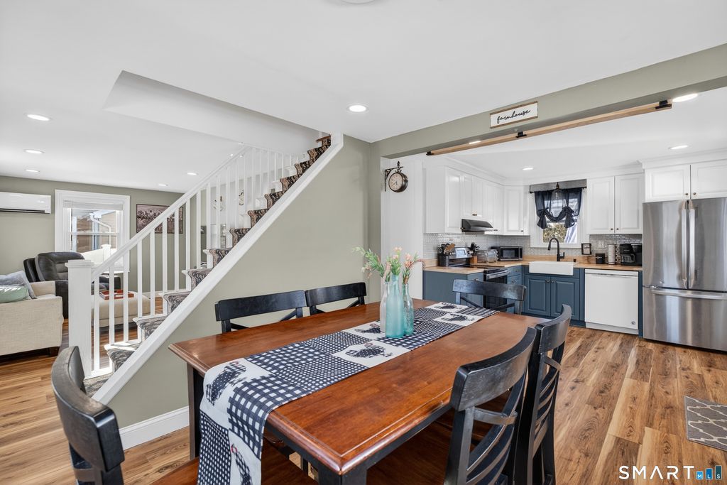 Welcome to this well-maintained single-family rental in a prime North Haven location! Offering flexibility and comfort, this home is available furnished for a turnkey experience, with the option to have it unfurnished to suit your needs. As an added bonus, the monthly rent includes electric! The main level features a spacious kitchen with newer appliances, a separate dining room, and a cozy living room - perfect for both everyday living and entertaining. A convenient first-floor bedroom and full bathroom provide added versatility. Upstairs, you'll find two additional well-sized bedrooms with great natural light. The partially finished basement offers bonus space with a recreation room and built-in bar. Enjoy outdoor living in the generous backyard complete with a deck, along with the convenience of a private driveway for off-street parking. Ideally located near shopping, dining, highways, and local amenities, this home combines comfort, convenience, and value in one exceptional rental opportunity. Credit 650+ per landlord.