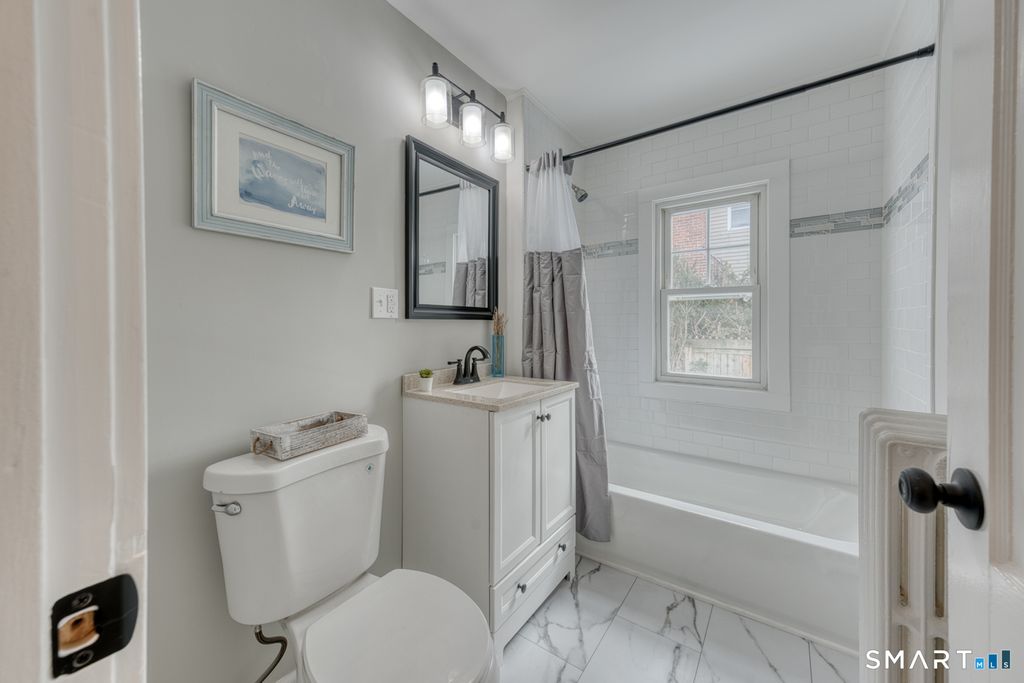 Stunning 4-bed, 2-bath Colonial, fully renovated & spanning 1760 sq ft, w/an additional 350 sq ft in the den. This meticulously updated home blends classic charm w/modern accents and functionality, offering an open-concept main floor that seamlessly connects the light, bright front to back living room which has a wood-burning fireplace & the timeless kitchen design and style, which has sleek cabinetry, granite counter tops, & updated stainless steel appliances-perfect for entertaining. Upstairs, the large Primary bedroom features 2 closets that is accompanied by two well-appointed bedrooms & a beautifully updated bathroom with walk-in shower and custom beadboard walls. Thoughtfully updated with energy-efficient features-including newer windows, newer roof. This move-in-ready home has refinished original wood flooring, gorgeous tiling in the kitchen and baths and beautifully crafted custom built-in shelves that add both character and storage, with fresh paint & a private fenced in back yard. Large basement perfect for expansion located right near shopping centers, restaurants, and parks. this home perfectly balances space, style & modern convenience. Don't miss the opportunity to own this turnkey Colonial gem-schedule today... Easy to show. Text and go!!