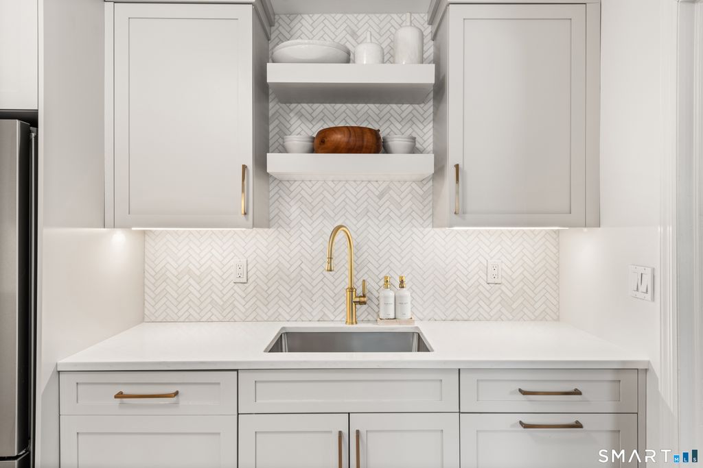 This home will feel like love at first sight. Only a short 5 minute walk to downtown New Canaan and train, this fully renovated townhouse (end-unit) has 3 bedrooms, 2.5 baths and 2,232 sqft, including a lower level that walks out to a private patio. Picture yourself stepping into the foyer each day - warm light, hardwood floors, and a dining room perfect for dinners with friends or weekend breakfasts. The kitchen is the kind you'll actually want to cook in: top tier appliances, bright white countertops and plenty of storage so everything has a place. The living room is tucked away just enough to be a quiet spot for reading, movie nights, or a cup of coffee in the morning. All three bedrooms are upstairs. The primary is calm and roomy with an en-suite featuring a floor to ceiling shower and heated bathroom floors. The two guest bedrooms are generous in size with plenty of closet space. If you value thoughtful updates, cozy corners, and being steps from town, this might be the perfect option for you. As another added amenity, the next owner will be able to look forward to brand new siding all throughout the entire exterior of the home as part of the upcoming complex initiative - this is already paid for by the current owners, no additional expense!