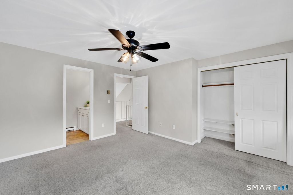 Adorable End-Unit Townhouse - Privacy, Comfort & Convenience Why rent when you can own? This charming end unit offers the perfect entry point into homeownership, combining smart design with everyday practicality. Step inside to an eat-in kitchen with a large pantry and a spacious living room featuring a cathedral ceiling that creates a bright, open feel. A sliding door leads to your private patio, and a convenient half bath completes the main level. Upstairs, the generous primary bedroom with full bath provides a quiet retreat. The lower level includes washer and dryer, plus a partially finished basement ideal for a home gym, recreation room, or additional living space-with plenty of storage. Freshly painted, professionally steam-cleaned carpets, and newer window treatments make this home truly move-in ready. Located near shopping, dining, commuter routes, Interstate 84, and UCONN, this property delivers on style, convenience, and affordability.