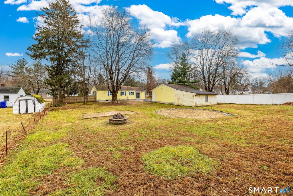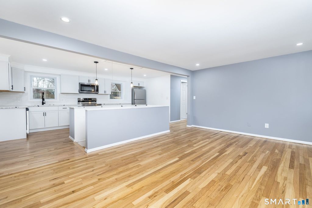 Welcome to 555 Graham Road in South Windsor, a beautifully fully remodeled 4 bedroom, 2 full bath home ranch offering over 2,300 square feet of stylish living space, set on a spacious .46 acre lot in an unbeatable location. Step inside to discover a bright, open-concept layout featuring hardwood floors throughout the main level. The inviting living room with fireplace flows seamlessly into the stunning white-cabinet kitchen, complete with quartz countertops, tile backsplash, a large center island, and stainless steel appliances perfect for both everyday living and entertaining. An additional dining area with sliders to the backyard and a convenient mudroom. In additional there are three bedrooms and a full bathroom on the main level. The fully finished lower level expands your living options with an additional bedroom, spacious living room, office space, and laundry room, ideal for in-laws, guests, or a flexible work from home setup. There is a new energy efficient gas heating system with a newer on demand boiler provides comfort and peace of mind. Outside, enjoy a huge, flat, cleared backyard with plenty of space for recreation or entertaining, along with a detached two-car garage for added convenience. Ideally located close to the library, Town Hall, Evergreen Walk, shopping, dining, and restaurants, this move-in-ready home truly offers the best of comfort, style, and location.