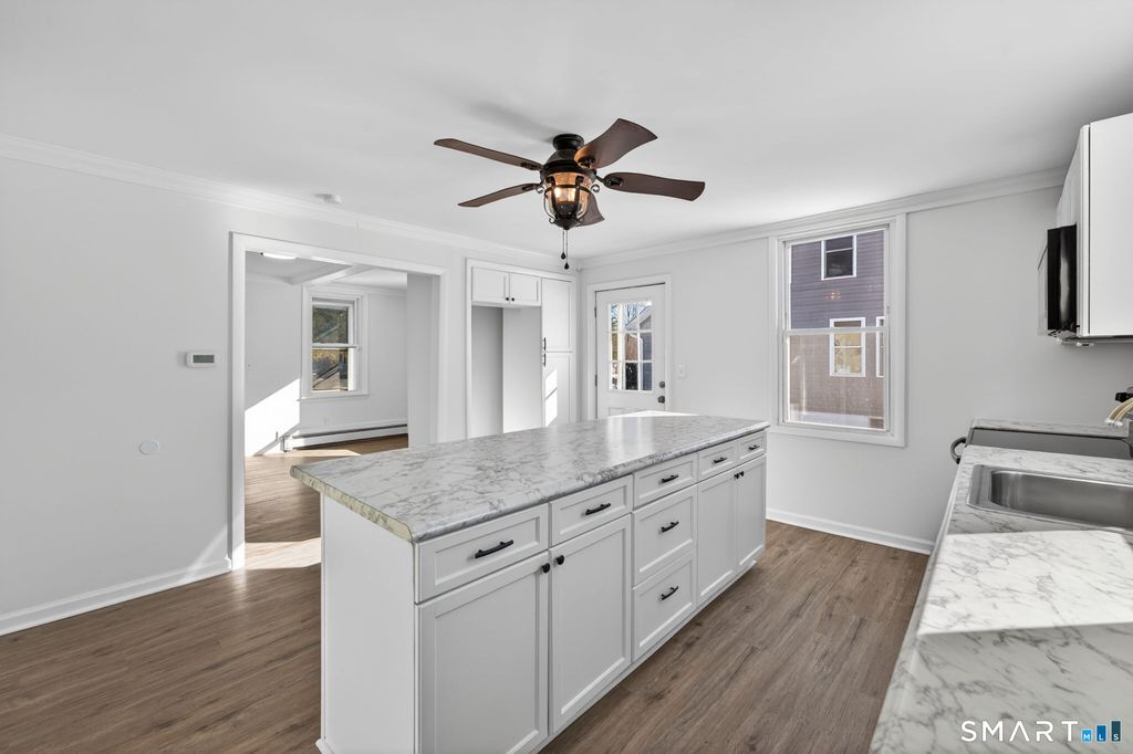 Charming and move-in ready 2-bedroom, 1-bath Colonial featuring a beautifully updated kitchen and fresh interior paint throughout. Step inside to find a bright, inviting layout with sun-filled living spaces, refinished hardwood floors, and classic details that blend character with modern updates. The renovated kitchen offers crisp white cabinetry, stylish countertops, and stainless steel appliances, creating a clean and functional space perfect for everyday living and entertaining. Upstairs, you'll find two comfortable bedrooms with great natural light and a refreshed full bath. The home's neutral color palette and recent updates make it easy to personalize and enjoy from day one. Conveniently located near shopping, dining, and commuter routes, this home is ideal for first-time buyers, downsizers, or anyone looking for a low-maintenance property with timeless appeal.