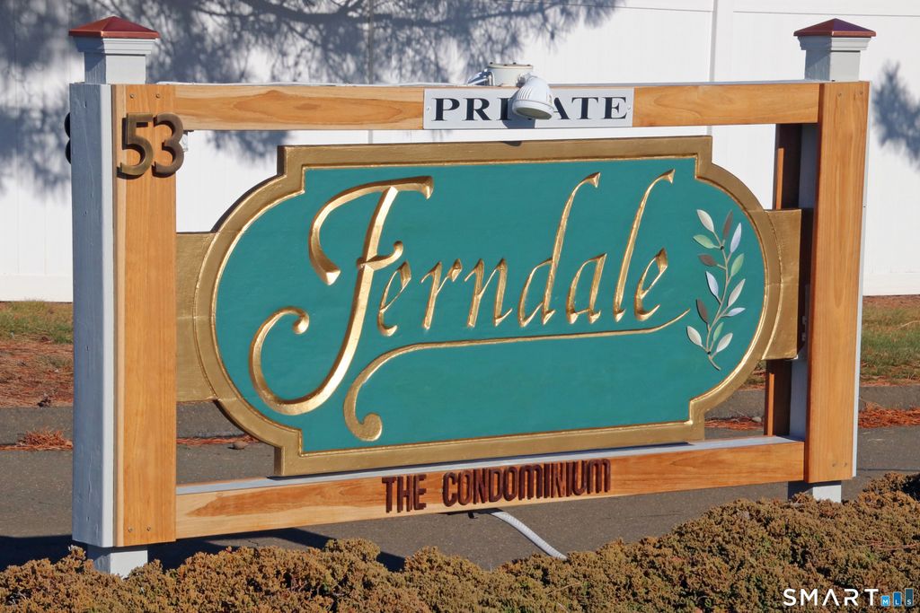 Welcome to unit 3-F in the Ferndale condominium complex at 53 Brushy Plain Road, Branford. The Ferndale complex is in a residential area, just two minutes from I-95 Exit 54, which provides easy access to New Haven and the Shoreline area, and just a few minutes to downtown Branford, shopping centers and the beaches. The spacious unit is on the second floor, is accessed by a private entrance, consists of a living room and dining area, a kitchen, one bedroom, a full bath, and an in-unit washer and dryer. The dining area features a floor to ceiling custom made wall unit cabinet for storage and display. A sliding glass door in the bedroom accesses a private balcony, perfect for your morning coffee. A large three-bay window system in the living room offers lots of natural sunlight and a rural pastoral view, as does the bedroom balcony. The kitchen was remodeled in 2019 by Rogers Kitchens, including cabinets, countertops, appliances and floor covering. Six windows were replaced with Anderson Renewal windows in 2022 and the shower and tub was remodeled in 2024 by Bath Fitter. The attic provides a large storage area and is accessed via new high-quality drop down stairs, and there is more storage in an exterior shed accessed by the private balcony. This is perfect for you! Come see this today!