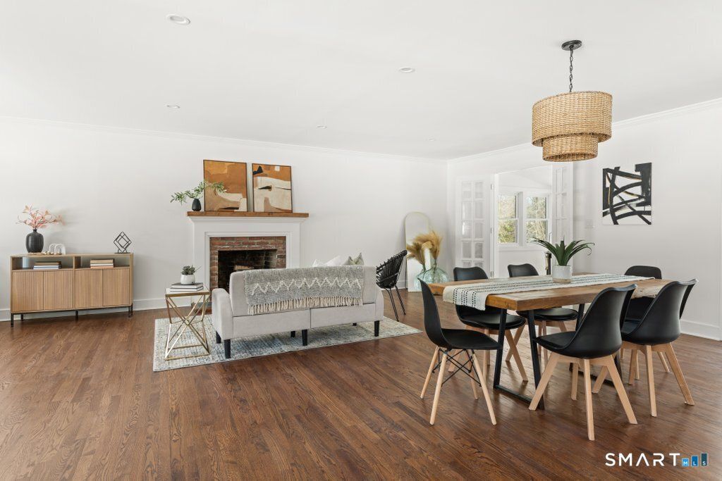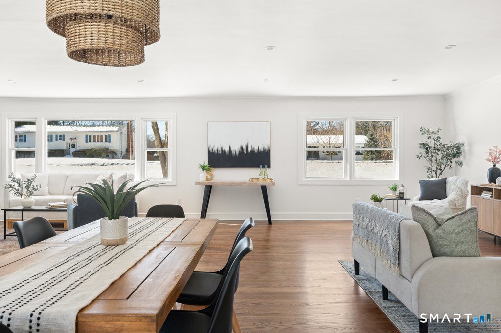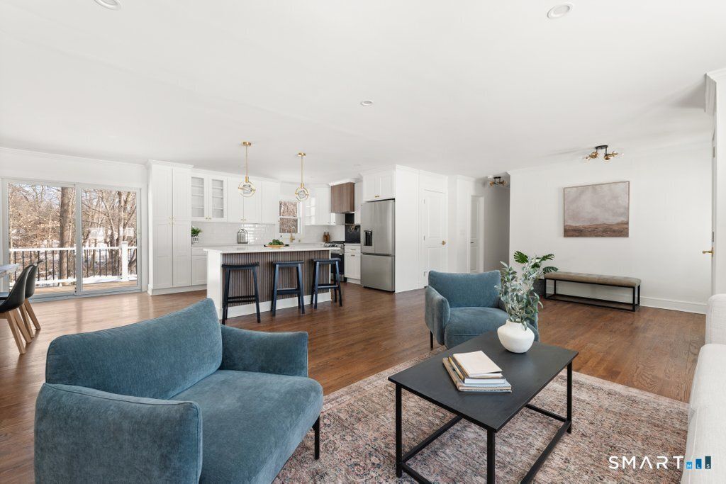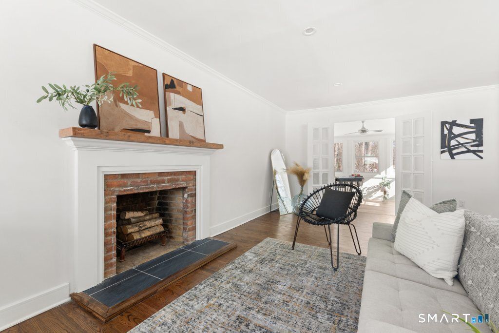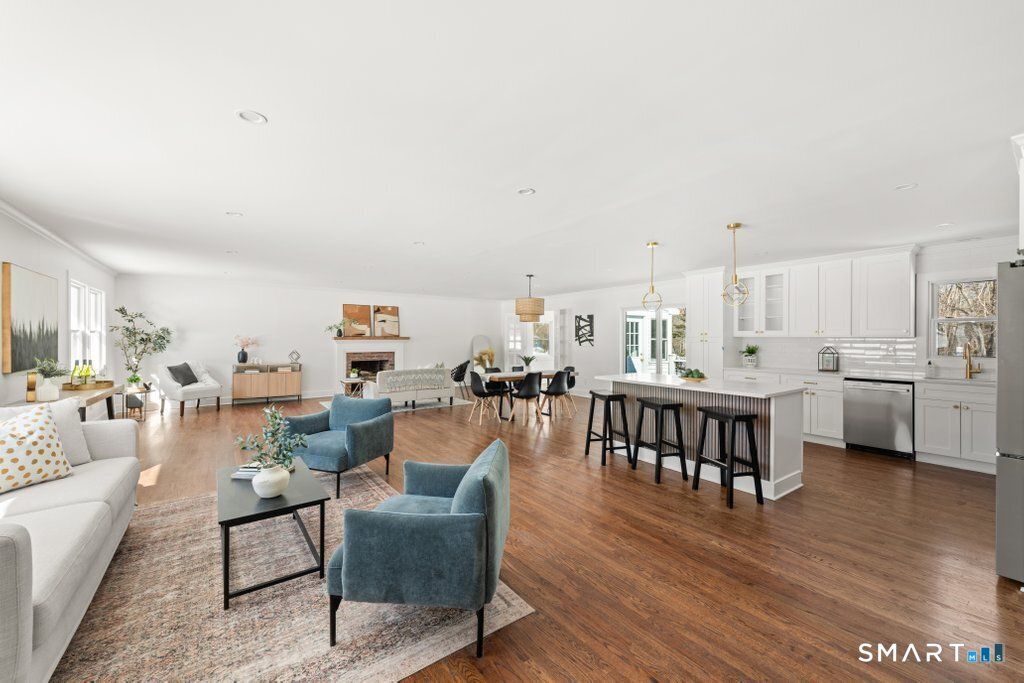 Welcome to refined, effortless one-level living in the highly coveted town of Orange, where thoughtful updates and timeless design come together in perfect harmony. This beautifully renovated 3-bedroom, 2-bath home offers a bright, airy open-concept main level that feels both expansive and inviting-ideal for lively gatherings or cozy evenings at home. The seamless flow between the kitchen, dining, and family rooms creates a natural hub for entertaining. Rich hardwood floors run throughout, complemented by elegant trim work and a stunning fireplace that serves as a warm and sophisticated focal point. The fully renovated kitchen is truly the heart of the home, showcasing sleek stainless steel appliances, a custom range hood, pot filler, beverage fridge, and carefully curated finishes that blend modern luxury with everyday functionality. Just off the main living area, a sun-drenched sunroom provides a peaceful retreat. Whether used as a home office, reading lounge, or morning coffee sanctuary, it overlooks a private backyard complete with a gently babbling river, offering a connection to nature. The spacious primary suite features a walk-in closet and a beautifully renovated full bath with stylish, high-end finishes. Two additional bedrooms share a fully updated bath. Outside, enjoy true peace of mind with major upgrades already completed: new roof, new windows, new deck, new copper gutters. Set in one of Orange most desirable locations plus effortless living all on one level.