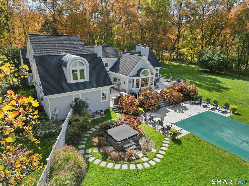 Welcome to this North Stamford retreat, gracefully set on 2.34 flat acres along the Greenwich border. Here, privacy and comfort meet refined updates in a home that feels expansive without being oversized. Thoughtfully designed with four bedrooms - including a desirable first-floor primary suite with coffered ceiling - the layout offers both flexibility and ease. The updated chef's kitchen opens to sunlit dining and living spaces highlighted by vaulted ceilings and exceptional natural light. Upstairs, a second potential primary suite and two additional bedrooms. A finished lower level offers a gym, playroom, game room, wine cellar and extensive storage. Recent upgrades include a beautifully reimagined primary bath, new windows, and whole-property high-speed WiFi - seamlessly extending indoors and out. This home is an entertainer's dream! A striking pebble-finished gunite pool and spa, outdoor shower, professional landscaping and three distinct bluestone terraces create a resort-like feel. See full list of improvements. Interior photos coming soon.
