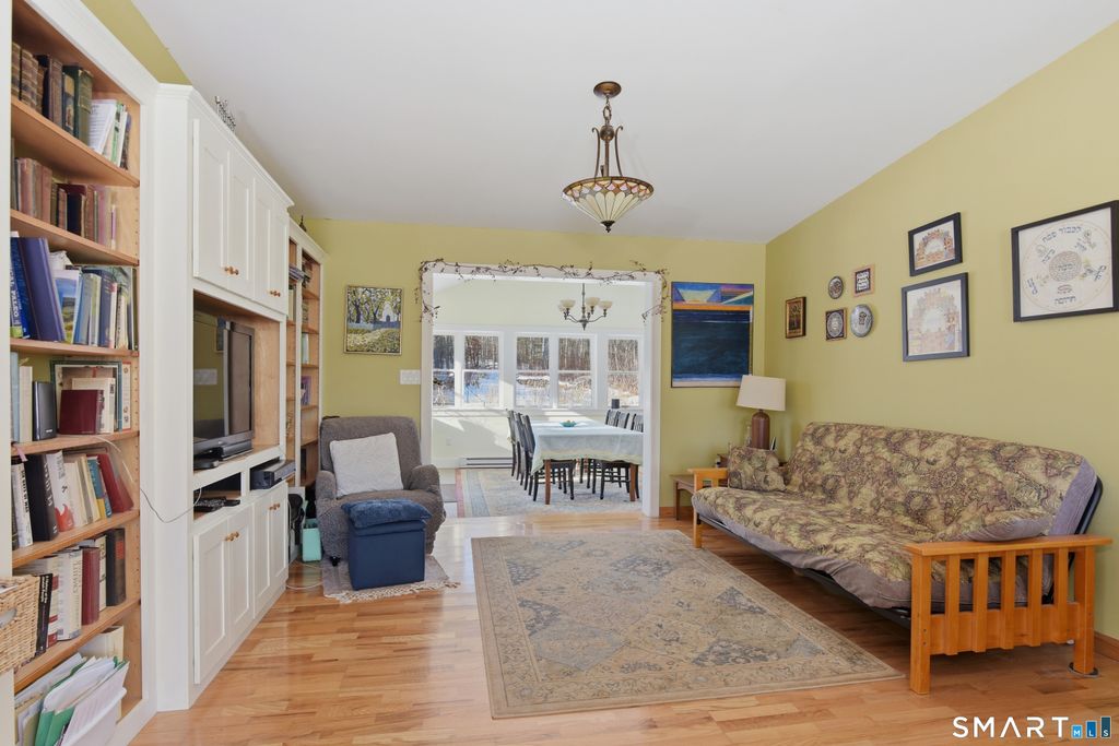 Set on a very private hilltop with a long winding driveway, this exceptional Woodstock property includes two lots totaling 9.4 acres of peaceful, natural beauty. The home offers 2,256 square feet of elegant living space, all conveniently located on one level. There have been extensive investments by the current owners. The improvements and upgrades include the addition of a formal dining room with vaulted ceiling, a new 1st floor half bath, new 1st floor laundry room, and a spectacular 22x18 glassed great room that fills the home with light and captures the surrounding nature views. The owners also added an attached storage garage for functionality. The kitchen, with stainless appliances and pantry, opens to living and entertaining areas that are enhanced by an elegant fireplace, stunning built-ins, and beautiful hardwood floors. The thoughtful layout includes 3 bedrooms, 2 and 1/2 baths, with a separate 2-bedroom guest wing ideal for visitors or flexible living needs. A massive walkout basement with wood burning stove provides excellent space for a workshop, abundant storage, or future expansion of living area. Relax on the back deck overlooking the expansive grounds and serene wooded setting. Installed solar provides efficient green energy. Located in the highly desirable town of Woodstock CT, this rare offering combines acreage, privacy, and quality living in one remarkable hilltop retreat. Please visit and experience the serenity this property has to offer.