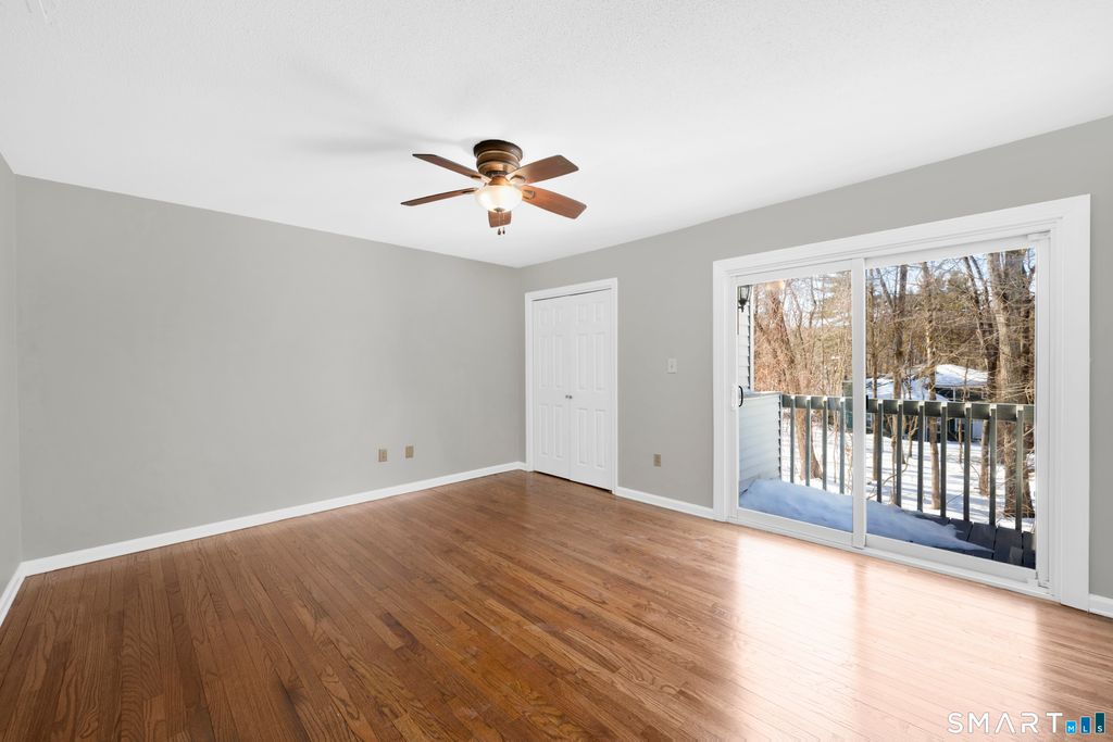 Welcome to this absolutely charming 2 bedroom, 2.5 bath townhouse-style condo in sought-after Whispering Woods! Beautiful hardwood flooring flows throughout, complemented by gas heat, central air, a carport, and brand-new kitchen appliances. The spacious living and dining area is filled with natural light and opens to a private deck overlooking peaceful woods - your own retreat for morning coffee, evening unwinding, or birdwatching. Both bedrooms are generously sized - a true two-bedroom layout that comfortably accommodates full sized furniture. The primary suite features a private bath with stall shower, while the second bedroom offers its own private balcony, perfect for enjoying a quiet start to the day. Need extra space? The partially finished basement is ideal for a home office, gym, or cozy media room. This home has a nice location tucked away in the back of the community near the pool for added privacy. All of this just one mile to charming Collinsville Center, the Farmington river hiking and biking trail, and minutes to stores, restaurants, and The Shops at Farmington Valley. Low-maintenance living with space, comfort, and an unbeatable lifestyle location. Don't miss this rare opportunity to own in one of Canton's most desirable communities!