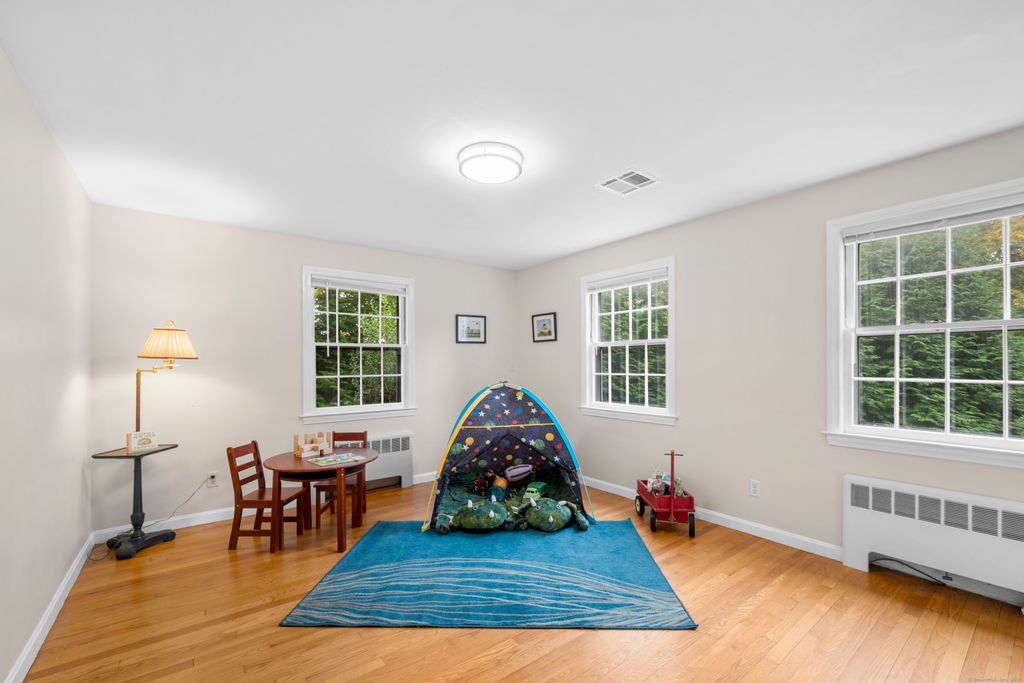 Tucked away on a quiet cul-de-sac just minutes from vibrant West Hartford Center, this expansive 5-bedroom, 3 full and 2 half bath home offers space, comfort, and modern upgrades in one of the area's most desirable locations. Hardwood floors run throughout the home, complementing a spacious living room with a fireplace and oversized glass doors that open to a private deck-perfect for entertaining or relaxing. The kitchen opens to a large, heated sunroom filled with natural light. The primary suite has two large closets, en-suite with walk-in shower and double vanity, and a private balcony overlooking the back patio. A second bedroom, half bath, and a dedicated exercise room round out the upper level. Downstairs, find three additional bedrooms-one with its own en-suite bathroom and another with a cozy wood-burning fireplace. A full bathroom with walk-in shower serves the main floor. The fully finished basement spans the entire footprint of the home and includes a pool table, hot tub, kitchenette, and additional bathroom. Modern upgrades include owned solar panels with a Tesla Powerwall battery for whole-house backup, a new roof (2023), and new air conditioning and heat pump systems. Close to amenities such as shopping, dining, and the West Hartford reservoir. Don't miss your chance to own this home in an unbeatable West Hartford location!