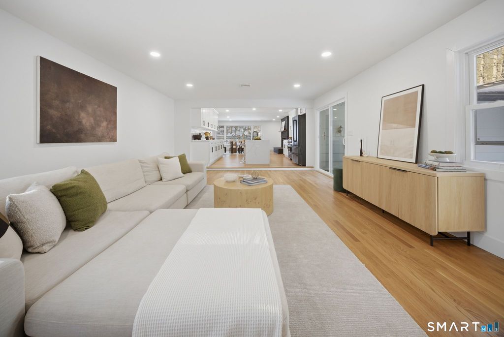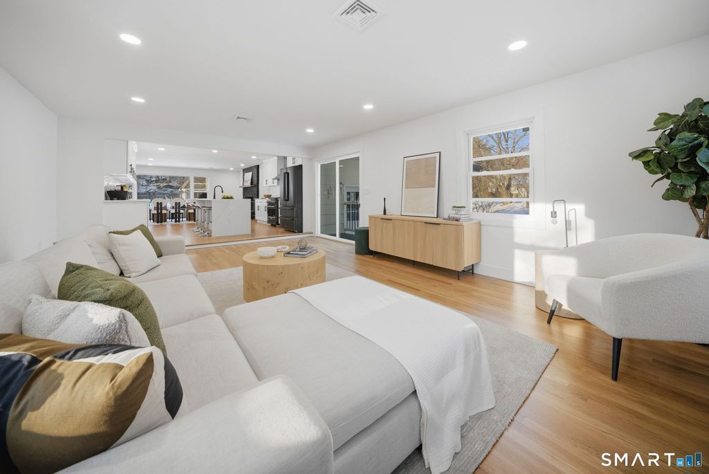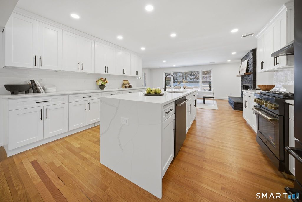 Tucked away on a quiet cul-de-sac, 90 Lu Manor Drive offers modern updates and timeless comfort in a beautifully renovated ranch. Set on a level .43-acre lot bordered by Horse Tavern Brook, this four-bedroom, two-bath home combines privacy with convenience. The sun-filled interior features an open layout with hardwood floors throughout and a classic stone fireplace that adds warmth and character. The redesigned kitchen includes black stainless-steel appliances, quartz countertops, custom cabinetry, and ample storage, making it ideal for both daily living and entertaining. The spacious primary suite includes a stylish tiled bath, creating a private retreat. Three additional bedrooms provide versatility for guests, work-from-home needs, or family living. The updated hall bath features clean, contemporary finishes. Outdoor living is easy with a large patio overlooking the expansive backyard and natural brook setting. Extensive improvements-including a new roof, vinyl windows, electrical updates, and modern HVAC-offer energy efficiency and peace of mind. An oversized two-car garage completes the property. Convenient to schools, parks, shopping, and commuter access, this move-in ready home delivers comfort, quality, and location in one exceptional Fairfield offering. Owner is a licensed real estate agent.