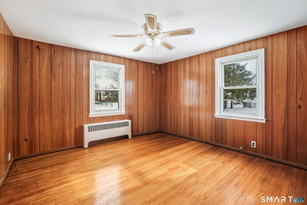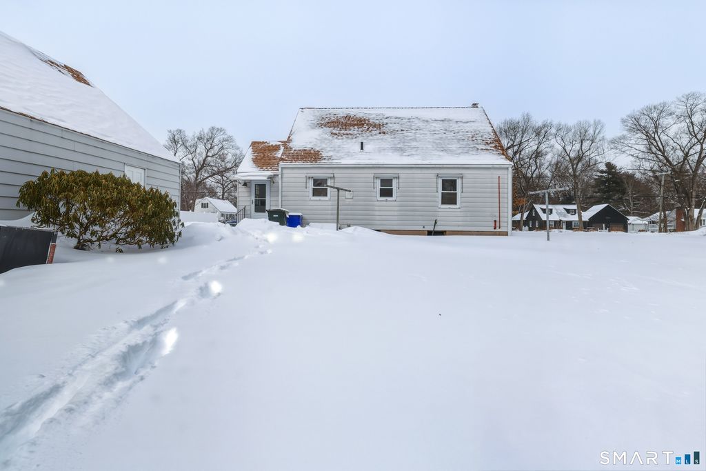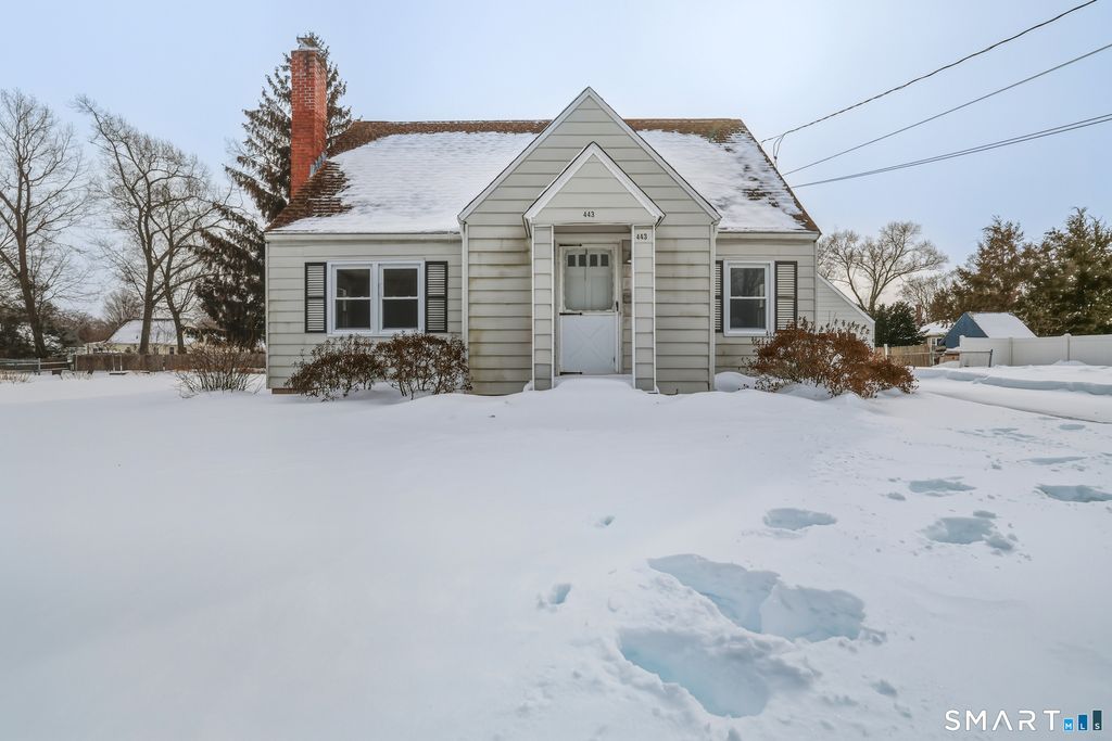 Welcome to 443 Elm Street in Windsor Locks! This charming Cape-style home is full of potential and ready for your personal touches. The main level is currently set up with an eat-in kitchen, a comfortable living room, two first-floor bedrooms-one of which could easily serve as a formal dining room-and a full bathroom. Whether you're looking for convenient one-level living or flexible space to suit your needs, this layout offers wonderful versatility. Upstairs, you'll find one finished bedroom plus a spacious attic area just waiting to be transformed into a stunning primary suite. With room for a full bathroom or a generous walk-in closet, the possibilities are exciting. The unfinished basement includes a toilet and shower, providing a great starting point for future expansion. Outside, enjoy a large, level backyard with a detached two-car garage offering plenty of storage and workspace. With low-maintenance aluminum siding and so much opportunity to build equity, this home is a fantastic chance to create something truly special.