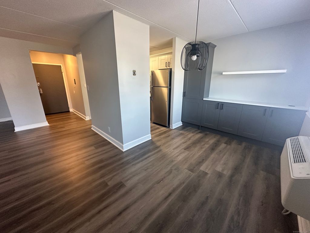 Welcome to easy living! 100% Remodeled and ready to move right in to the 2nd floor- one bedroom w/ fantastic city views w/ a modern flair! New kitchen - granite counter tops, new cabinets, laminate wood-like floors throughout & new stainless steel appliances. Updated bathroom has new vanity & granite top. Both heating/air conditioning units are new & energy efficient. New blinds on all the windows & new closet systems. Water is included. The unit has reserved parking space in the rear of the building - #80. Full laundry is located in the lower level - no need to leave your building! The building is secured & front lobby has door man. The building has new elevators! This lovely condo is conveniently located to shopping, public transportation, restaurants, major highways and train. Just a short walk to Beardsley Park with picnic areas, walking trails and playground areas. No pets and no smoking allowed. 2 months security is required. The Huntington is waiting for you to call it home.