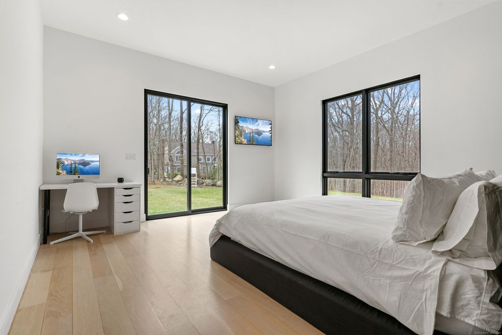 Welcome to this stunning modern farmhouse, a perfect blend of timeless charm and contemporary comfort. Nestled on a peaceful cul-de-sac in Wilton, this 4-bedroom, 3-full-bath home offers an ideal retreat surrounded by serene natural beauty. Step inside to discover soaring ceilings and an open floor plan that seamlessly connects the living, dining, and kitchen spaces-perfect for everyday living and effortless entertaining. Oversized windows flood the home with incredible natural sunlight, enhancing the warm, inviting ambiance throughout. The thoughtfully designed layout features a luxurious primary suite complete with a walk-in closet and spa-like bath, plus three spacious additional bedrooms and beautifully appointed full baths. A versatile bonus room on the second floor offers space for indoor play for those rainy summer days. Set on a level property, the home includes a covered patio with outdoor TV and an exceptionally private, flat backyard-ideal for entertaining, gardening or play. Located just minutes from both Wilton Center and Main Street Ridgefield, you'll enjoy the best of both towns with boutique shopping, dining, top-rated schools, and easy commuter access. Experience exceptional modern farmhouse living in a truly picturesque and peaceful setting. Available from mid June through Mid August.