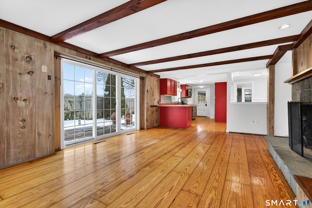 In town location! Close to Main Street and to several shopping centers for you to enjoy all that Old Saybrook has to offer: shops, restaurants, The Kate Cultural Art Center, library, parks & rec, and more! This 2 bedroom 2 bath ranch style home has beautiful hardwood floors through out. The natural light streams in through the bay window of the classic living/dining room, where a dutch door opens onto a back deck and private yard. The family room, off the country styled eat-in kitchen has a large gas fireplace and sliders to a patio. The primary bedroom has vaulted ceiling and wooden beams. A second bedroom has a walk in cedar closet. All the rooms are large, bright spaces. The house was originally designed as a 3 bedroom home, the owner absorbed a small bedroom to expand the primary. A two car garage along with a seperate work shop with wood stove completes the property. Professional landscaping and wooden fencing has kept this corner lot quiet and private. The solidly built home awaits your personal touches - add to the already charming layout and New England finishes. Make this your new home!