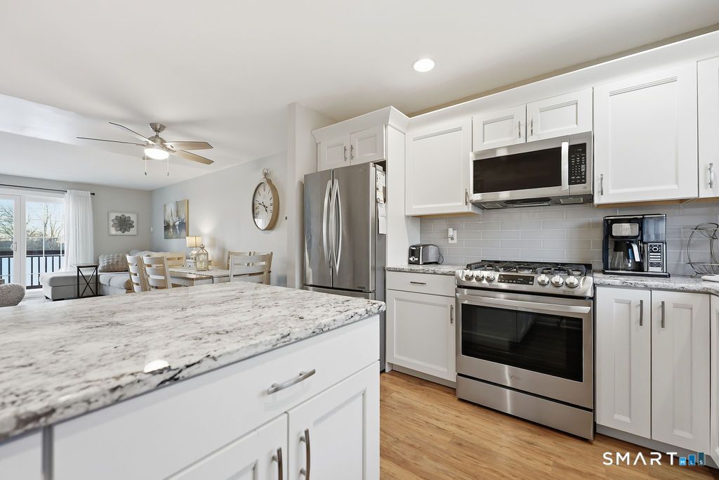 Located in the Sea Scape complex, this gorgeous townhome is the one you have been waiting for! It has been updated and shows beautifully. The main level features an open layout with remodeled kitchen, breakfast bar, updated cabinetry, granite countertops, tile backsplash and newer SS appliances, half bath, dining room and living room with newer sliding door to large deck overlooking the rear rolling lawn, gazebo and distant water views. The second level features two bedrooms, full bath with tub/shower and laundry. The lower level has attached one car garage with interior access, storage space and mechanical room. This wonderful condo has New Roof, newer furnace, newer central air conditioning unit and newer gas hot water heater. Sea Scape residents can enjoy a variety of amenities including a in-ground pool overlooking marsh land, beautiful clubhouse that can be rented out for special occasions, gazebo and beautifully landscaped grounds. Conveniently located near the popular Silver Sands Beach Club, East Haven's beautiful town beach, numerous recreational activities, shopping and restaurants. Easy access to major highways, close to downtown New Haven, train station, Yale, hospitals and less than 5 minutes to Tweed-New Haven Airport & Coast Guard station. This gorgeous and meticulously maintained condo could be your new home! Easy to show. Sale is contingent upon seller finding suitable housing.
