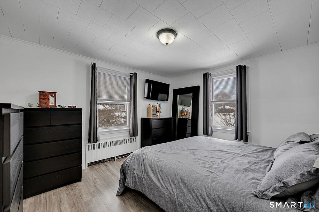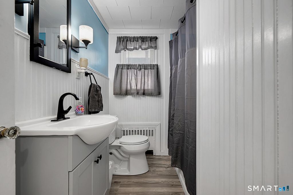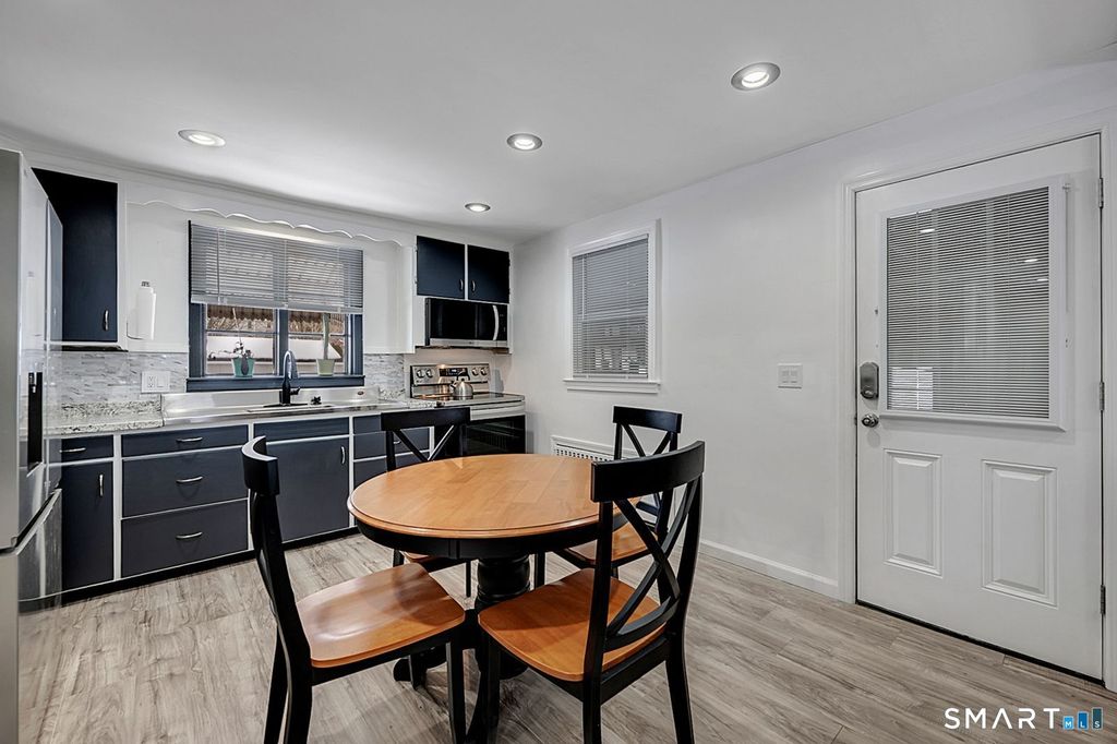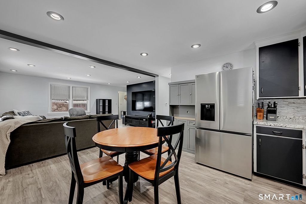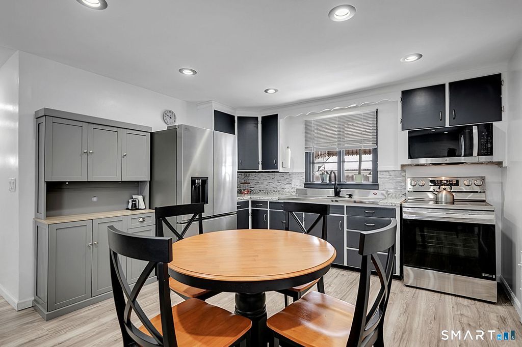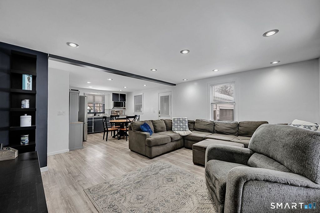Updated throughout and move-in ready, this Brick Ranch style Cape on the Eastside offers one level living with room for expansion! Features include 3 bedrooms, 1 full updated bathroom, and an oversized 2 car garage. Freshly painted with new vinyl plank flooring throughout, the home features a clean, modern feel from the moment you step inside. The open-concept living space provides seamless flow, complemented by recessed lighting for a bright and contemporary atmosphere. The kitchen is equipped with new stainless appliances, and the bathroom has been refreshed with updated fixtures. A huge walk-up attic offers abundant storage space and exciting potential for future expansion or additional living space. Ideally located within walking distance to the newly built Torrington High School and Oliver Wolcott Tech, as well as a nearby park and public pool. This home delivers comfort, flexibility, and convenience in a great location!