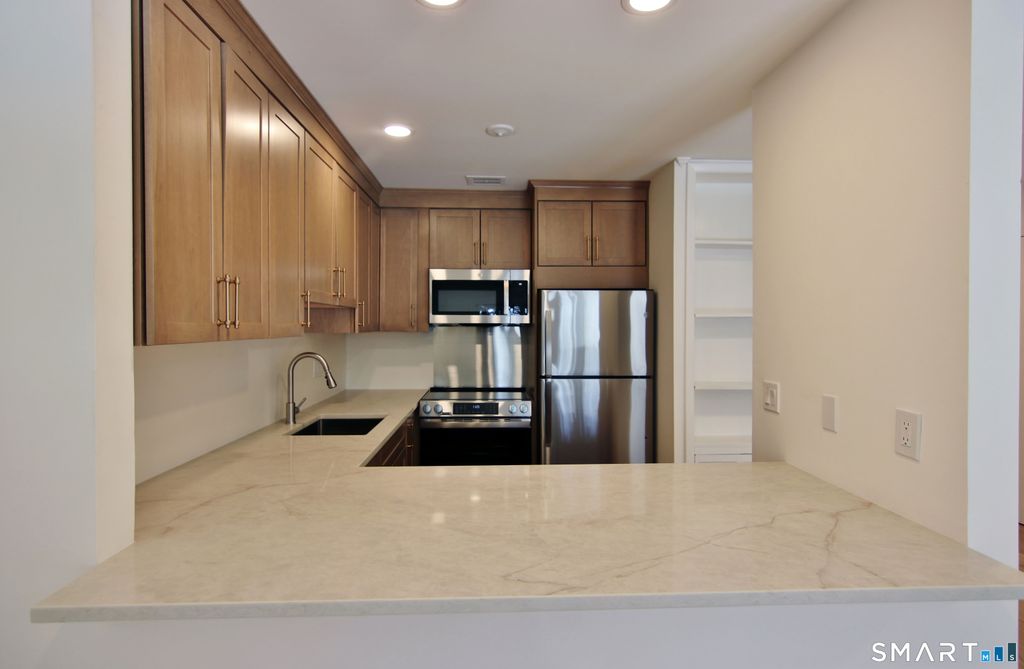 A True Showstopper - Brand New Condo in Sought-After Heywood Heights! Welcome to this stunning, beautifully designed condo located in the highly desirable Heywood Heights community. This super-stylish unit features an open floor plan, new hardwood floors, and custom moldings throughout, creating a sophisticated and inviting living space. The designer kitchen showcases high-quality stainless steel appliances, quartz countertops, custom cabinetry, perfect for both everyday living and entertaining. The beautifully appointed bedroom offers comfort and style, complemented by a designer bath with exquisite finishes. A front-loading washer and dryer are conveniently located in the unit. Additional highlights include central air, a large private patio, a dedicated storage unit, and a garage space included in the rent. Heywood Heights is known for its beautifully landscaped, park-like grounds with mature plantings, a pool, clubhouse with saunas and showers, ample parking, and exceptional convenience - located just 0.8 miles to the train, close to the beach, I-95, and Chelsea Piers. A truly exceptional rental opportunity.
