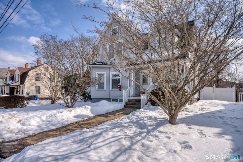 26 Kinney Ave, Norwich, CT - Recently updated 1,426 sq ft Colonial offering classic 1929 character and a functional layout. A welcoming front porch leads you into a bright and inviting foyer, where tall ceilings immediately showcase the character of this classic home. The spacious living room flows effortlessly into the formal dining room, creating the perfect setting for entertaining. The dining room is filled with natural light and highlights the distinctive architectural details of the 1920s era. The kitchen offers gas cooking and convenient access to a half bathroom with a charming pocket door. Just off the kitchen, the back door opens to a deck overlooking the fully fenced-in backyard - complete with a cement patio, ideal for outdoor gatherings or relaxing evenings. Upstairs, you'll find three comfortable bedrooms and a full bathroom, offering a functional and inviting layout. Additional features include oil heat and public water. Conveniently located near local amenities, this home offers character, space, and practical updates throughout.