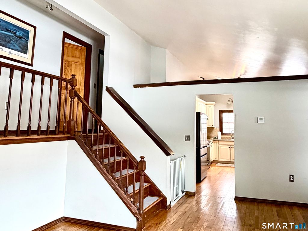 Have you been looking for a 3-bedroom, 2.5 bath home in E. Lyme? This may be the one you've been waiting for! Welcome to 54 Charter Oak Dr., set on a 1/2 acre in a desirable, walkable neighborhood. Inside, hardwood floors span the main level consisting of a large Living Room, bright Kitchen & Dining Room. The kitchen is a standout with granite counters, stainless steel appliances, skylight & a vaulted ceiling that adds airy charm. The deck, accessed through a conveniently located door in the kitchen, adds nearby space for outdoor grilling. The contemporary split-level layout offers a front entranceway & places all 3 bedrooms together on the upper level. The bedrooms contain hardwood floors throughout. The Primary en-suite features a remodeled bath with tile shower & double sinks. The remaining bedrooms share the hall bathroom, renovated in 2023, complete with a tub/shower. Need extra room to spread out? The finished lower level boosts the home to roughly 2,056 sq ft & includes a comfortable family room with fireplace, an office/flexible-use space, plus a remodeled laundry room & updated 1/2 bath. Step outside to a backyard made for relaxing & entertaining, featuring a professionally installed (2025) above-ground pool with decking & fenced yard, great for pets & outdoor play. Solar panels help keep electric bills low, making this home as practical as it is welcoming. Enjoy easy access to I-95, shopping & nearby beaches, the perfect location for convenience & fun!
