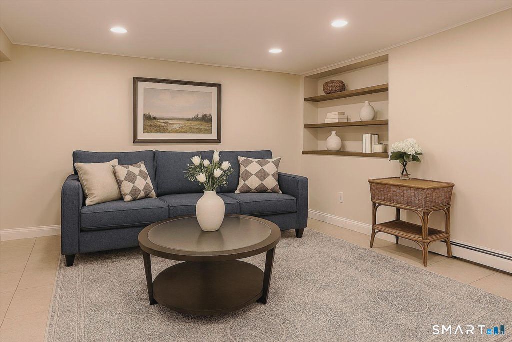 This stunning renovated corner-unit condo offers the perfect blend of style, comfort, and convenience. Thoughtfully updated, the home features newly renovated bathrooms with modern finishes and timeless design. Beautiful hardwood floors flow throughout the main level, creating a warm and inviting atmosphere with an open concept floor plan. Crown molding adds architectural elegance, while Hunter Douglas blinds provide both style and function throughout the home. The spacious living area is highlighted by a cozy fireplace-ideal for relaxing evenings-and elegant French doors that open to a private upper deck. Enjoy peaceful mornings or unwind at sunset overlooking wooded surroundings that offer exceptional privacy. ceiling fans in the bedrooms enhance comfort year-round. The finished lower level expands your living space with beautiful custom built-ins and recessed lighting, perfect for a family room, home office, or media space. An under-garage offers easy access and everyday convenience, especially during New England winters. This community offers a beautiful inground pool for those beautiful hot summer days and a clubhouse. Ideally located near parks, beaches, and with quick access to I-95, this home combines tranquility with commuter-friendly accessibility. Move-in ready and impeccably maintained, this is a rare opportunity to own in one of Branford's most sought-after communities. Don't miss your chance to make The Meadows your new home.