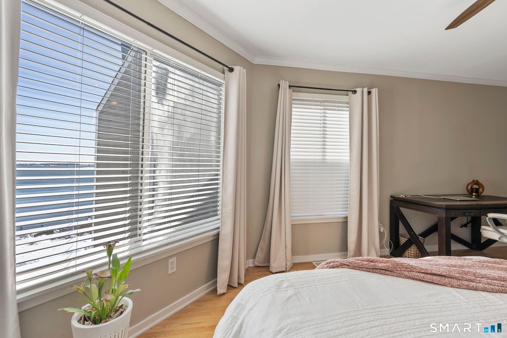 Live the life you've always imagined at 38 Harbour Close. Wake up each morning to sweeping views of Long Island Sound from the comfort of your primary bedroom - true waterfront living at its finest. This exceptional condo offers resort-style amenities that are nearly unmatched: a heated indoor lap pool, fully equipped fitness center with professional-grade equipment, Norwegian sauna, and an outdoor pool overlooking the water. The gated community features a scenic boardwalk wrapping around the peninsula, leading to waterfront restaurants and marinas - all while being just minutes from downtown New Haven and conveniently located near major highways. Inside, the luxury continues. The thoughtfully updated unit showcases stainless steel appliances, bright shaker-style cabinetry, granite countertops, gleaming hardwood floors, and fresh paint throughout. The main level offers an open-concept layout connecting the living, dining, and kitchen spaces - all framed by water views - along with a charming half bath and raised office nook perfect for working from home. Upstairs, you'll find two bedrooms and two full baths, including a stunning primary suite featuring a spacious walk-in closet and an updated bath with a modern vanity, granite counters, and tiled shower. Additional upgrades include new windows, smart thermostats, and a private balcony overlooking the Sound - the perfect place to unwind and take in the coastal breeze.