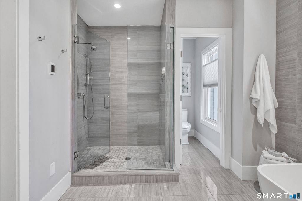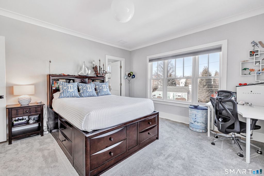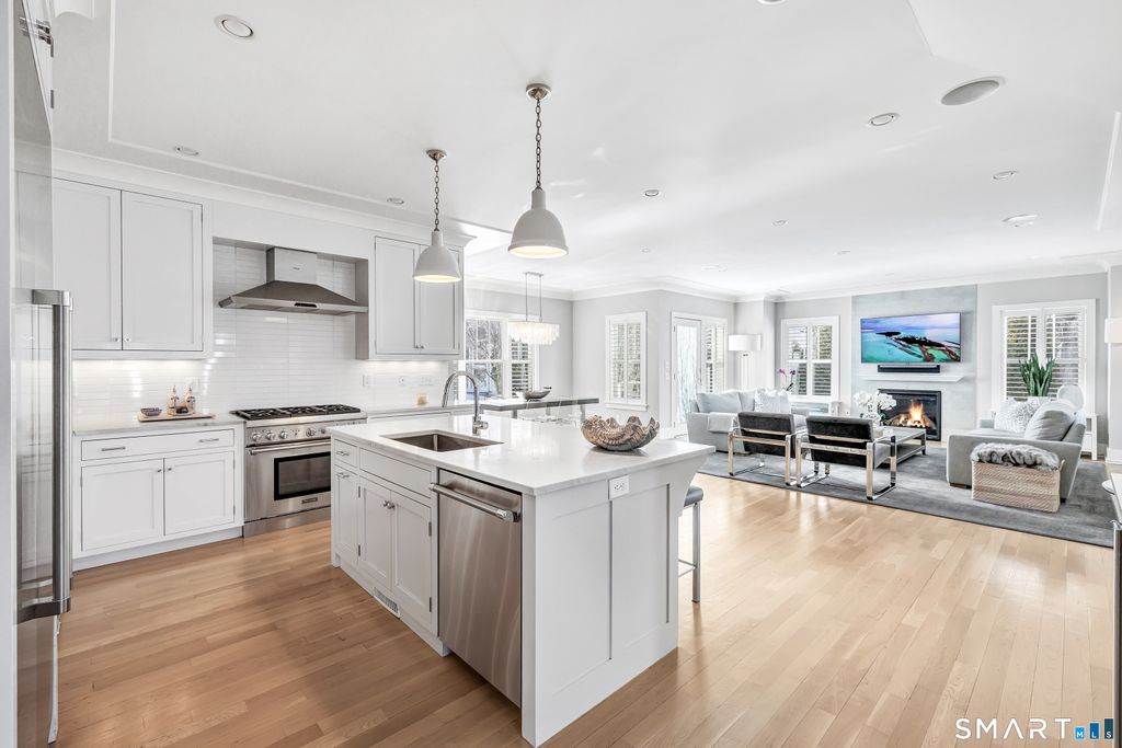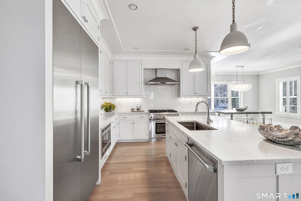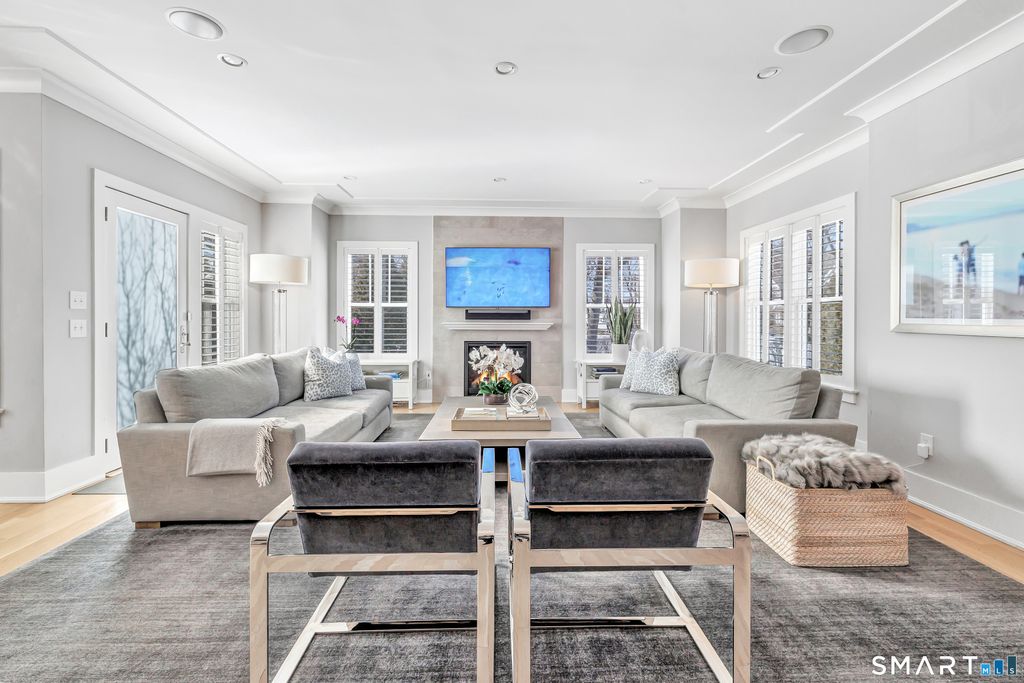 RARE BEACH PROPERTY ~ Steps to Sandcastle Playground, Jennings Beach and South Benson Marina - with downtown Fairfield just a short stroll away - this architecturally striking Colonial delivers a rare blend of presence, scale and coastal serenity. Homes of this caliber seldom become available along the shoreline. ~ THE SOCIAL EPICENTER ~ Unlike many beach homes that compromise on space, this residence offers a sprawling first floor where the Great Room and Chef's Kitchen unite in a seamless open layout. The show-stopping kitchen is anchored by an oversized Carrara marble island and appointed with a professional Thermador suite, designed for intimate gatherings and grand entertaining alike. Light pours in, enhancing the home's refined yet relaxed coastal aesthetic. ~ PRIVATE RETREATS ~ Upstairs, soaring ceilings and bespoke millwork frame a sun-drenched Primary Suite with floor-to-ceiling glass and a private balcony capturing the morning sunrise and water views. Four additional bedrooms, including two en-suites, offer comfort and flexibility. The expansive sun-filled third level features custom nooks and a secluded sixth-bedroom suite with its own panoramic balcony - ideal for guests or au pair. ~ OUTDOOR OASIS ~ Lush specimen plantings and mature greenery create a fully fenced, private setting on a cul-de-sac. An expansive bluestone patio sets the stage for effortless outdoor entertaining or relaxation. A RARE OPPORTUNITY to own scale, craftsmanship and privacy at the beach.