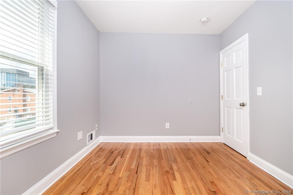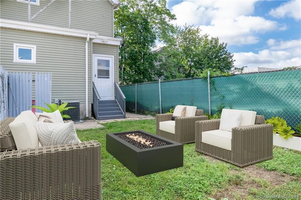 Sophisticated townhouse-style living offering 3 bedrooms, 2 baths, and rare designated backyard green space - perfect for an outdoor patio set and barbecue. Step into a contemporary open-concept living and dining area featuring gleaming hardwood floors, high ceilings, recessed lighting, and custom wood blinds. The home has been freshly painted throughout and enhanced with new vanities, fixtures, and designer lighting. The gourmet kitchen is beautifully appointed with white shaker cabinetry, granite countertops, and new stainless steel appliances. The second level features a spacious primary bedroom with walk-in closet, along with two additional generously sized bedrooms and a full bath. Enjoy the convenience of in-unit washer and dryer, efficient gas heating, and central air conditioning. Ideally located just steps from vibrant downtown Stamford's premier dining, shopping, and nightlife.