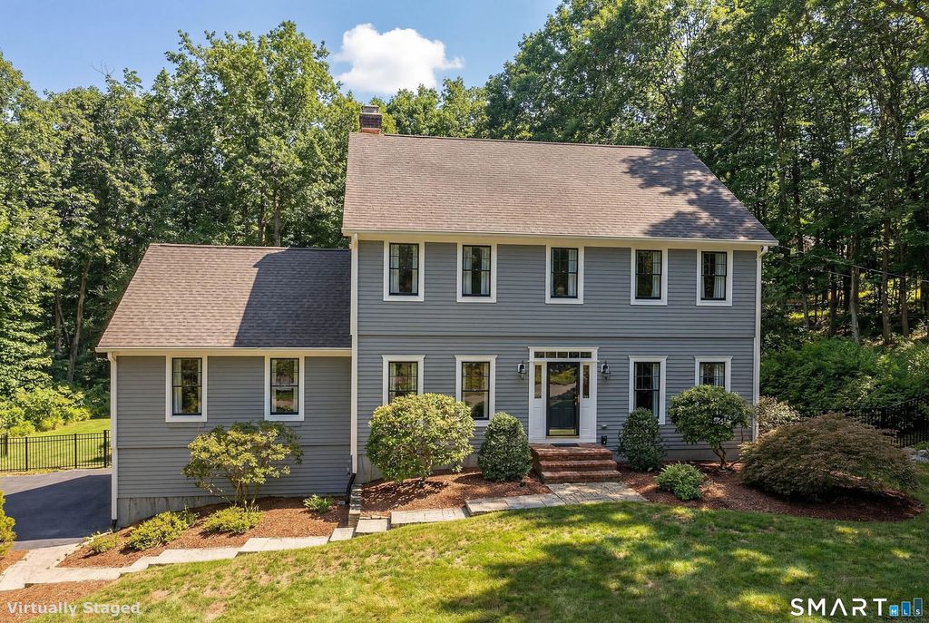 Welcome to 39 Bradley Ln, a stunning four-bedroom, 2.5-bath Colonial that perfectly blends warmth, style, and functionality. From the moment you enter, you are greeted by an inviting atmosphere that immediately feels like home. The remodeled 2017 gourmet kitchen is truly the heart of the property, featuring a large center island, marble countertops, premium finishes, and a beautifully designed walk-in pantry. The open-concept layout flows seamlessly into the sun-filled dramatic vaulted-ceiling family room, highlighted by a striking brick fireplace and expansive windows that flood the space with natural light. A sliding door leads to a spacious deck and patio(built in 2021) overlooking a fenced yard with a beautiful garden area, perfect for relaxing or entertaining. The main level also offers a formal dining room ideal for gatherings and a comfortable living room both connecting effortlessly to the kitchen. Upstairs, the primary suite provides a private retreat with a fully remodeled bath in 2024 and a custom California Closet walk-in. Three additional bedrooms feature thoughtfully designed organizational closets and share a well-appointed full bath. The finished lower level includes a large recreation room with a built-in entertainment center and a generous mudroom area, offering exceptional flexibility, storage, and everyday convenience. This home blends classic Colonial character with modern charm, set on over two acres of private surroundings. Welcome Home!!