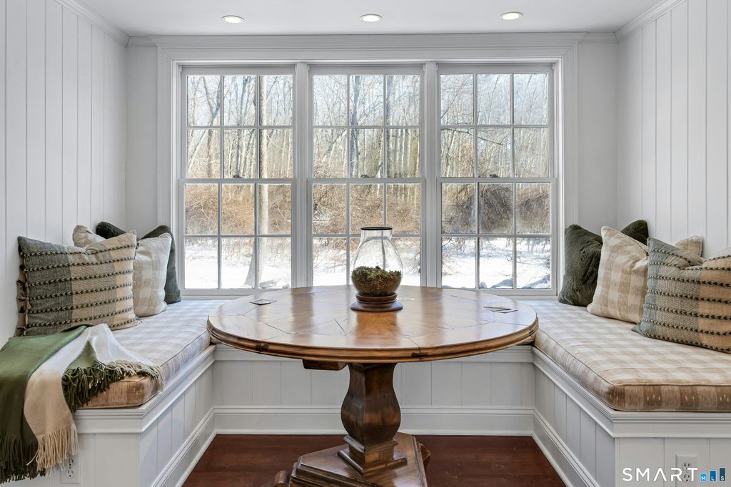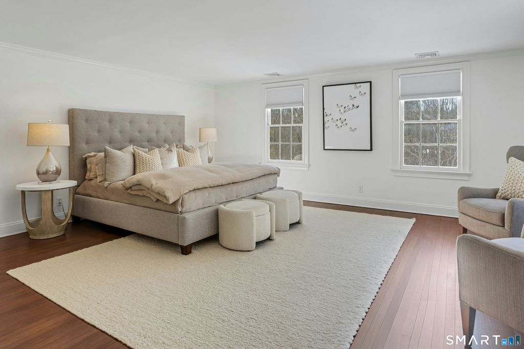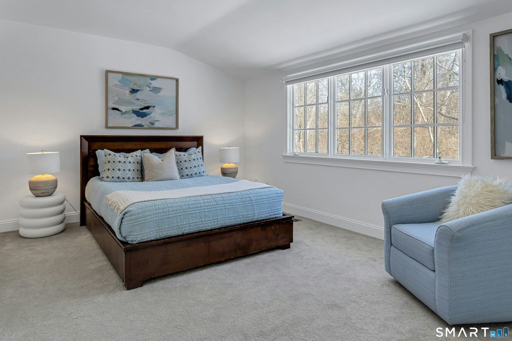 Timeless elegance in Westport's renowned Old Hill. Set on 2.22 bucolic acres w/a heated Gunite pool & picturesque pond, this expansive 5-6 bedroom,4.5 bath farmhouse blends classic charm w/thoughtful recent enhancements that delivers a renewed sense of style & energy to the home. A renovated kitchen remains the heart of the home, featuring a generous center island & a stunning, glass-walled breakfast nook which allows for basking in nature's splendor while savoring a meal. Fresh interior updates incl. a newly painted family room, updated lighting w/two new chandeliers, a modern backdrop for comfortable everyday living. This precious home has been refreshed throughout to highlight its impressive scale, open flow, & architectural character. The sun drenched primary ste is a true retreat w/a fireplace, spa like bath & generous walk in closet. A flexible floor plan offers multiple living areas & a potential in law suite-ideal for multi generational living, guests, or work from home needs. Four wood burning fireplaces add to the home's timeless appeal. Outdoors, enjoy a thoughtfully landscaped property, the pool & spa, set amidst such soothing natural surroundings. Additional highlights: city water & sewer, a whole house generator, & the bonus of exceptional privacy just moments from town. Old Hill is one of Westport's most coveted neighborhoods, known for its quiet, tree lined streets & unbeatable proximity to town, schools, & commuting. A rare opportunity to own a special home.