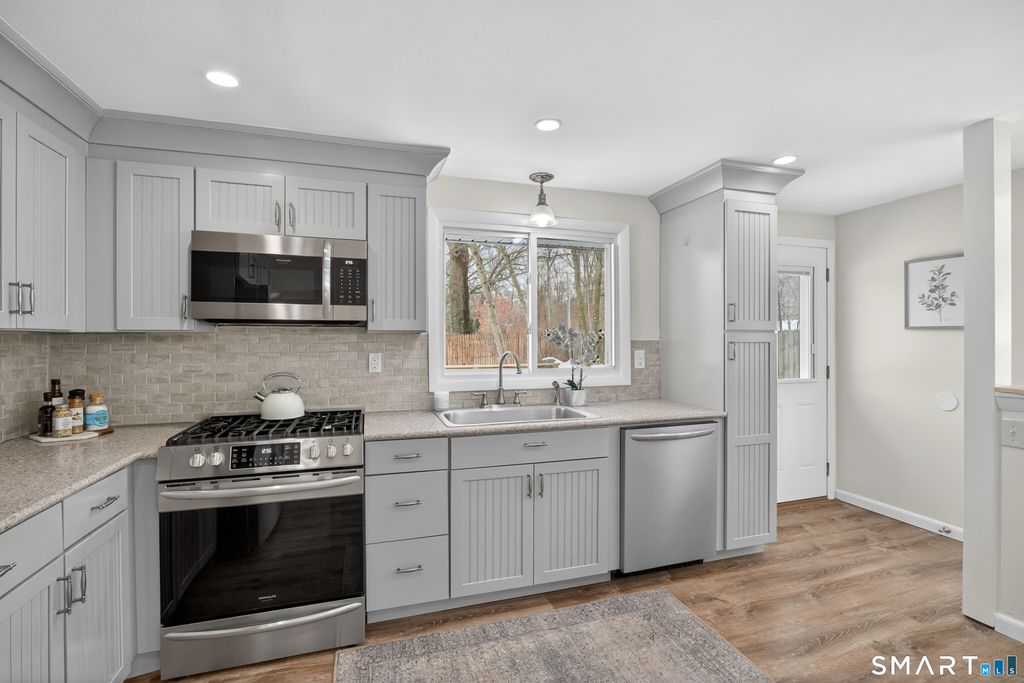 This terrific property is located on a quiet lane, 5 minutes from West Beach. Enter to find a sun filled property with great recent updates including the kitchen, Thermopane windows, propane high efficiency heat system and tankless hot water, and two split units for AC. A new roof was installed in 2023. The great room features an electric fireplace and bay window and hardwoods. The kitchen features newer stainless appliances, gas cooking, granite countertops and LVT flooring. Hardwoods are found in the three bedrooms including the primary bedroom which has a half bath. There is a large, updated hallway full bath. A second bay window illuminates an open stairway to the lower level. This well-finished, 480 SF bonus room features extensive built-in storage and separate heating/cooling and a laundry area. The adjacent garage doubles as great project space. Outside, the deck overlooks a fully fenced back yard perfect for pets and privacy. There is a built-in garden area, large sand box and a garden shed. Located just minutes from all shoreline treasures including one of the most stunning public beaches on the shoreline, dozens of marinas, scores of eateries, shops and boutiques. Easily reached by MetroNorth station in Westbrook with direct access just 2 hours to NY and Boston! Nothing to do here. A jewel. Enjoy!