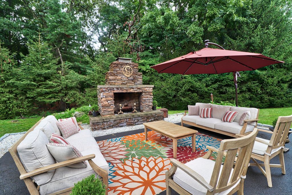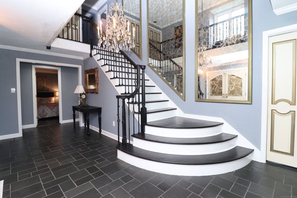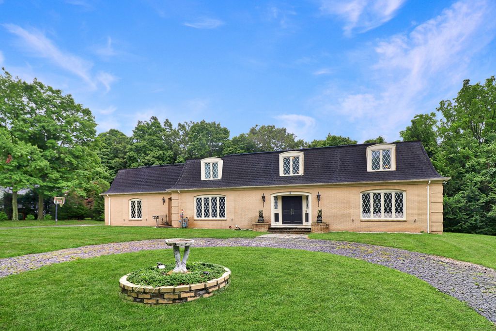 Discover a truly exceptional residence where classic Colonial charm seamlessly blends with the allure of the Mediterranean. This one-of-a-kind home presents a grand entryway, 4,280 square feet all on a .81 acre level lot, greeted by a circular driveway. This home boasts both convenience and privacy. Indulge in the beauty of hardwood floors gracing portions of the main level & entire second floor. Step inside to discover a world of elegance. The open floor plan will have you entertaining in style with spacious living & dining rooms creating a sophisticated ambiance while the family room offers a cozy retreat with its floor to ceiling stone FP. The eat-in kitchen is a culinary haven that flows effortlessly to outdoor living. A bedroom/office & updated full bath on the main level are enticing. Laundry & an updated modern powder room are also conveniently included on this level. A refinished grand staircase leading to the upper level adds a touch of drama. A primary en suite bedroom with walk-in closet & second en suite bedroom exude ultimate privacy and luxury. 2 more generous sized bedrooms complete this level. Property card has 3 bedrooms & 4 full baths, 1 half bath. Currently being used as a 5 bedroom with 3 full baths & 2 half baths. Room sizes are approximate.