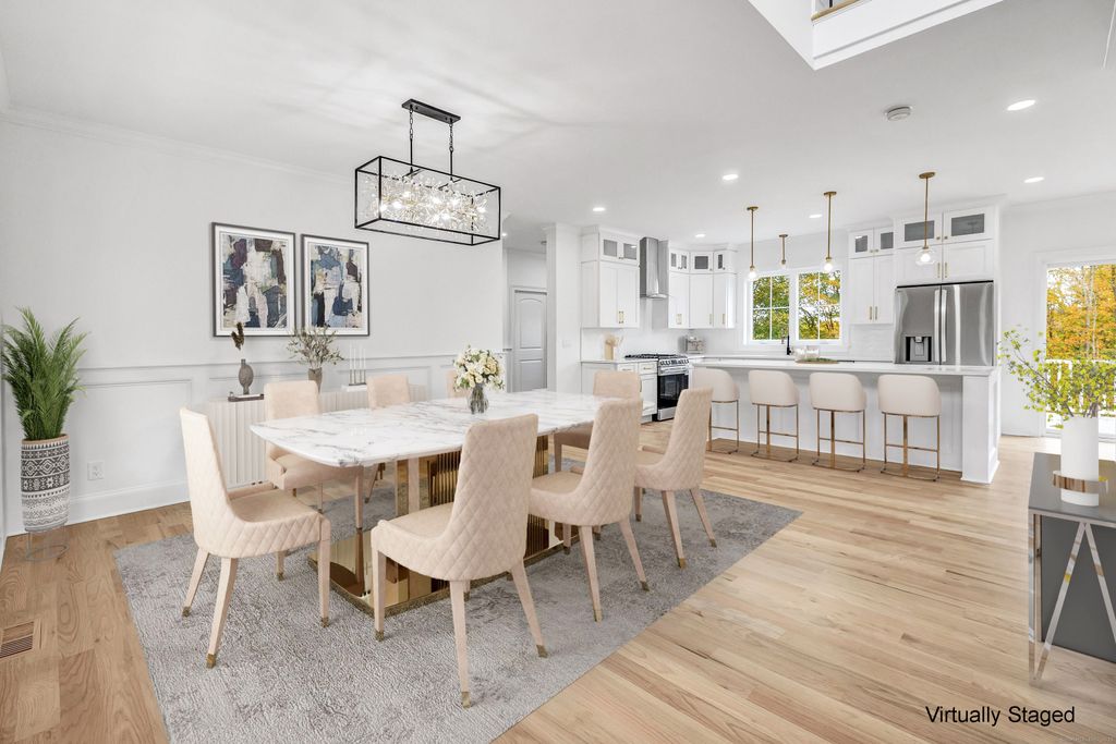 Welcome to this beautifully crafted 4 bed, 4.5 bath farmhouse colonial nestled on a serene 1.5-acre lot in the heart of Monroe. Offering over 3,800 sqft (including finished lower level) of thoughtfully designed living space, this home blends contemporary elegance with classic charm. Step inside to find a bright, open-concept layout featuring hardwood floors throughout. The main level boasts a spacious dining room and a high-end kitchen with stainless steel appliances, center island, tile backsplash and ample cabinetry. The stunning living room, highlighted by a cozy gas fireplace, flows seamlessly to an oversized Trex deck overlooking the private, wooded backyard. A dedicated home office, stylish powder room, pantry, and mudroom with custom built-ins add to the home's functionality. Upstairs, the luxurious primary suite features tray ceilings, dual walk-in closets, and a spa-like bath with double vanities, a soaking tub, and a tiled shower. 3 additional bedrooms include a private ensuite with full bath and walk-in closet, plus a beautifully appointed hallway bath and a convenient 2nd fl laundry room. The finished walkout basement offers an additional 1,200 sqft of flex space with a full bath perfect for a rec room, gym, and playroom or potential in-law set up. Additional highlights; propane heating, central air, public water, and underground utilities. Perfectly located near local amenities, parks, and schools, this home offers the best of comfort, style, and convenience.