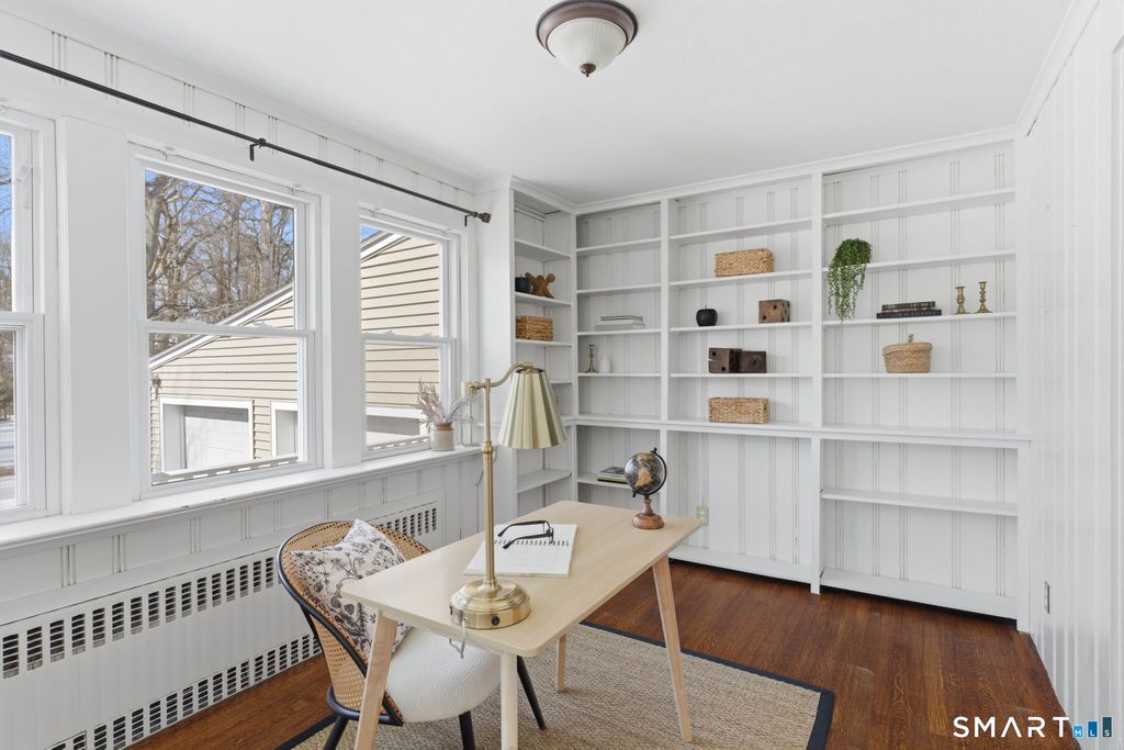 Location, space, and classic West Hartford charm come together at 1129 Trout Brook Drive. This beautifully maintained 4 bedroom, 2.5 bath Colonial sits on over one third of an acre directly across from the Trout Brook Trail and just minutes from West Hartford Center and Blue Back Square. Step inside and you are welcomed by warmth, natural light, and timeless architectural detail. The foyer opens to a spacious living room with a classic fireplace and detailed trim, while elegant archways add character throughout. A private first floor office creates the ideal work from home space, and the beautiful sunroom offers a bright setting to relax or entertain. The large updated kitchen features generous cabinetry and prep space and flows seamlessly into the formal dining room, making gatherings easy. There is also an option for first floor laundry for added flexibility. Upstairs, the primary suite includes an en suite bath and excellent closet space. Three additional bedrooms offer room for family or guests. Hardwood floors run throughout much of the home and have been meticulously cared for. The partially finished basement adds bonus space for a playroom, gym, or media area. Outside, mature trees and seasonal blooms frame the yard. A two car garage and driveway turnaround add everyday convenience. Newer thermopane windows and replaced below ground plumbing in 2023 provide peace of mind.