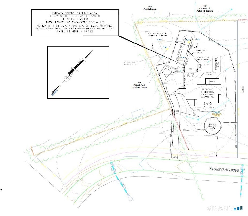 Ready to build, fully approved 5 bedroom septic system lot on a quiet sub-division in New Milford. Homes in the area recently sold for $900k. 2 available lots for sale (21 and 25 Stone Oak, $210k each). Survey and Septic approvals available.