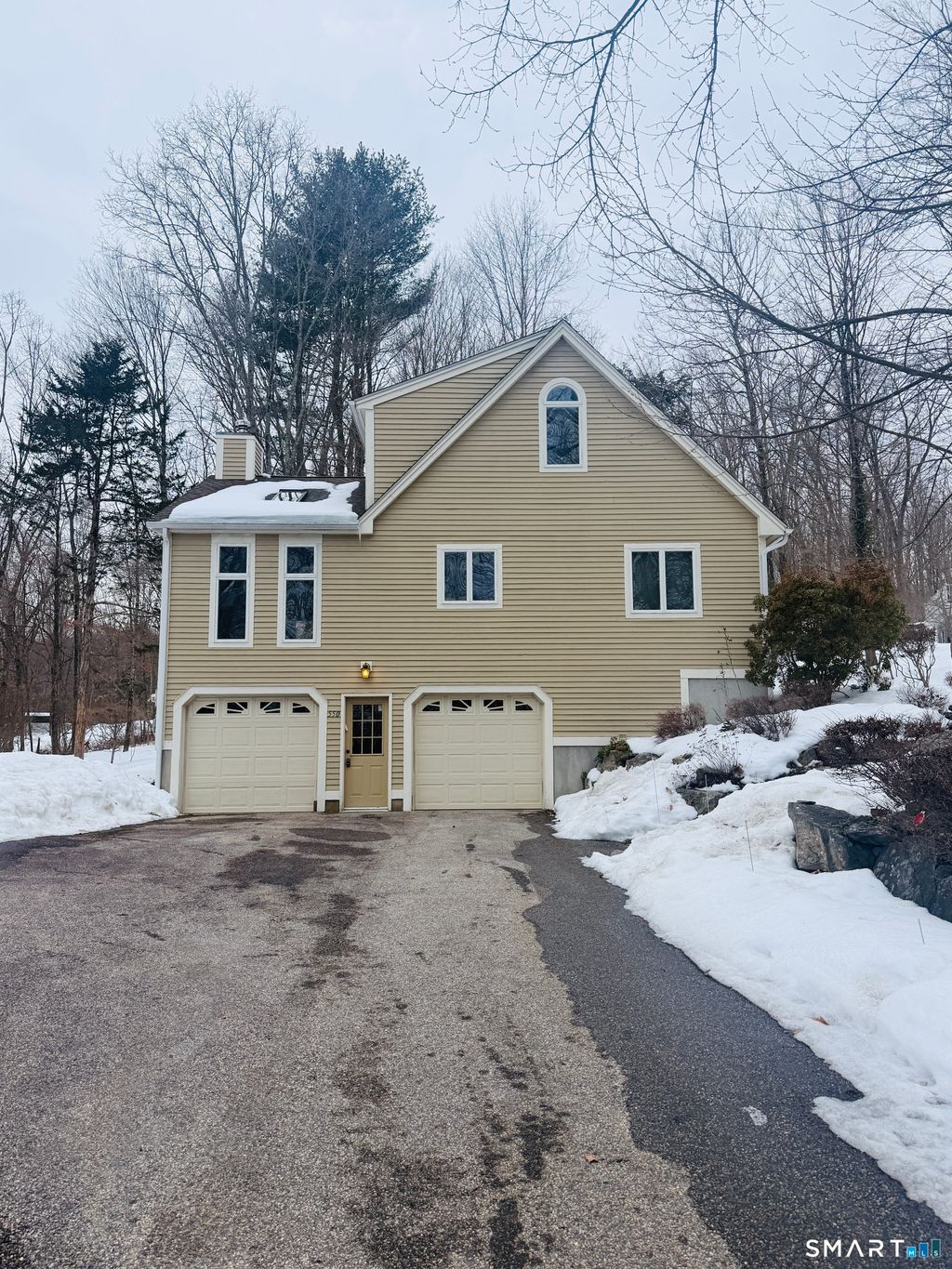 Charming Cape Cod-style home in Coventry, just 1 mile from Coventry Lake! Situated on 1.13 acres, this property offers space, comfort, and a desirable location. The kitchen features warm wood cabinetry, ample storage, and a functional layout. The home offers two living rooms: a formal living room with hardwood floors, and a second living area with tile floors, built-ins, a fireplace, vaulted ceiling, and skylight. A traditional door leads directly to the patio-perfect for entertaining and enjoying the private backyard. There are 3 bedrooms, including one on the main level and two upstairs, all with wall-to-wall carpeting. A spacious walk-in closet is conveniently located in the upstairs hallway. The home includes 2 full bathrooms, one on each level. The half-finished basement provides flexible space for a home office, gym, or media room, and the laundry is located in its own dedicated room. A wonderful opportunity to own a charming Cape close to the lake!