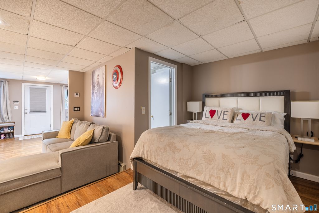 Welcome to this charming and spacious expanded Cape-style home in Hamden's desireable Mount Carmel neighborhood. Offering 1316 sq ft, 2 bedrooms, and 2 full baths, this home features a flexible layout designed for comfortable everyday living. The bright kitchen provides ample cabinet and counter space and opens to a dining area with cathedral ceiling, skylights, and gas fireplace. Sliders lead to a spacious deck overlooking the backyard, perfect for outdoor enjoyment.The main level includes a flexible room suitable for a bedroom, home office, or den. Upstairs is a generously sized primary bedroom with soaring ceilings and dual closets. The finished walk-out lower level offers additional living space with a private full bath, ideal for a recreation room, guest space. Recent improvements include updated flooring, refereshed interior paint, and cosmetic updates completed since 2022. Additional features include ductless cooling units, a paved driveway with ample parking and an expansive yard. Conveniently located near shopping, dining, schools, and major routes.