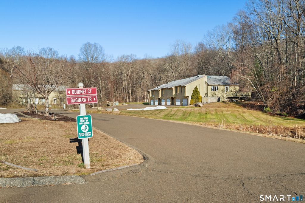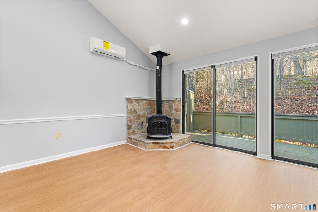 Welcome home to your beautifully updated 2-Bedroom, 1 Bath Townhouse Condo, offering comfort & style in a serene natural setting. Freshly painted throughout, this home features all new lighting and fixtures, beautiful flooring and an updated kitchen with crisp white cabinetry, quartz countertops, and stainless steel appliances. Your open living and dining area boasts high ceilings and is anchored by a charming wood-burning stove, creating a warm and inviting space. Enjoy year-round comfort with a split system for central air and radiant/electric heating, and a new hot water heater. The upstairs loft offers a 2nd bedroom, with skylights and closet space or the perfect spot for a home office, or creative retreat. The finished lower level provides flexible bonus space, or a possible 3rd bedroom, while excellent closet storage adds everyday convenience. Step outside to a large deck overlooking the woods, ideal for relaxing or entertaining in privacy. Additional highlights include a 1 car garage and access to community amenities such as tennis courts, playground, basketball court, and scenic ponds. Outdoor enthusiasts will love the proximity to Lake Quonnipaug, where hiking, fishing, and boating are all nearby-set within a peaceful, lake-adjacent environment. This move-in-ready home blends modern updates with nature and recreation, don't miss this opportunity!
