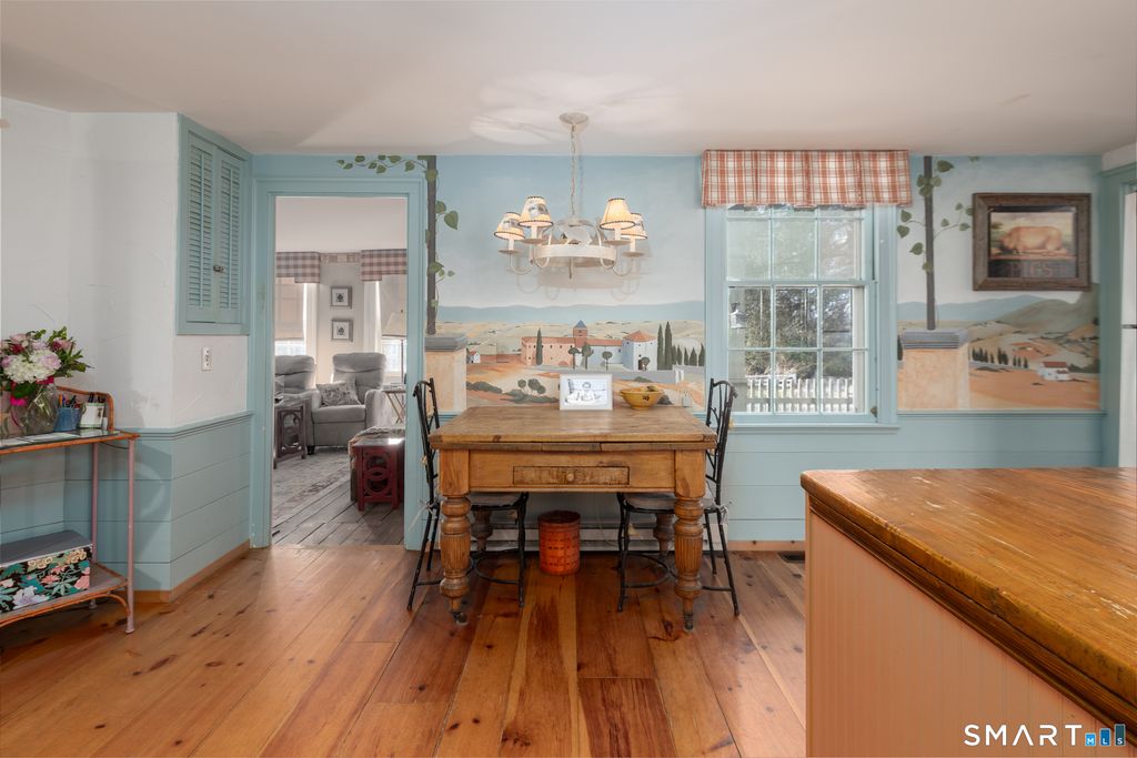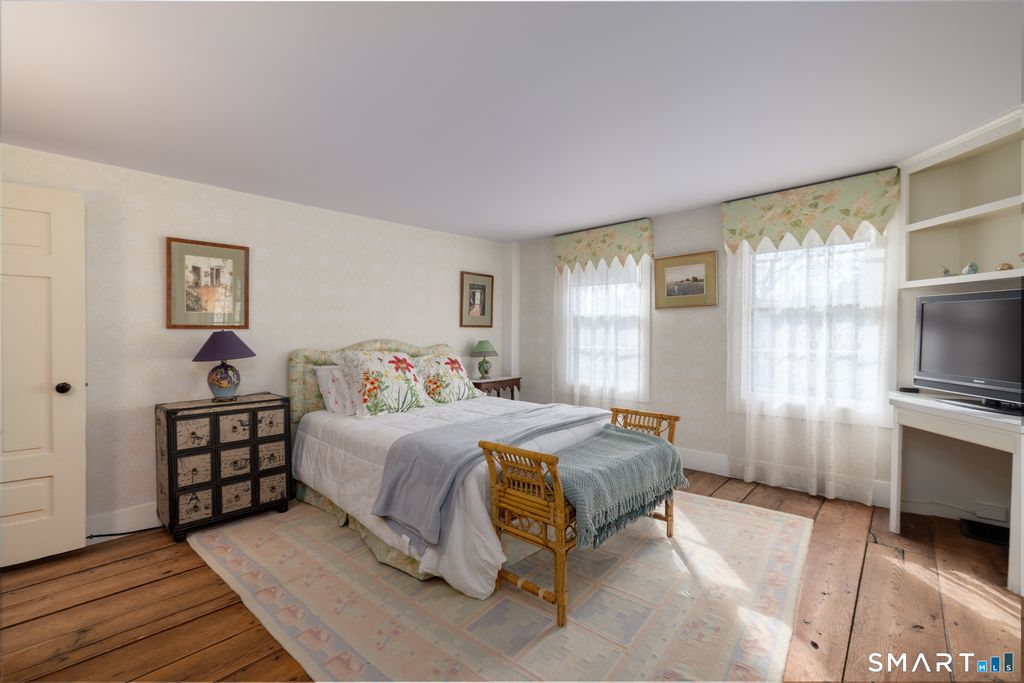 Located in picturesque Woodbury, voted Most Charming Town in CT by Reader's Digest in 2018, 2020 and 2024 and featured by Travel + Leisure among the 10 Best Places to Live. This stately circa 1845 home blends historic character with comfortable living. Set along scenic Good Hill Road and surrounded by lush, established gardens, featuring a black bottom gunite pool, private terrace, welcoming front porch, and charming potting shed, creating a peaceful retreat. Inside, a sun-filled front-to-back living room offers elegant moldings, custom built-ins, and a wood-burning fireplace. The adjacent study, with built-in bookcases and a second wood-burning fireplace, provides an ideal home office or quiet sitting room. The warm and functional kitchen includes solid wood, custom cabinetry, a brand-new Thor stove, and a breakfast nook. A versatile side room, with full bath, offers flexibility for a pantry, office, or first-floor bedroom. The dining room, just beyond the wet bar, overlooks the terrace and is perfect for gatherings. Upstairs are three spacious bedrooms and two full baths, including a primary bedroom with fireplace, wall of closets and private en-suite. Cedar-lined closets are found throughout. A classic two-story barn provides three-car parking plus ample storage or hobby space and an area to lounge by the pool. Central air and a whole-house generator complete this idyllic country retreat. Good Hill leads directly to Main St. and Hollow Park, road construction ends in May