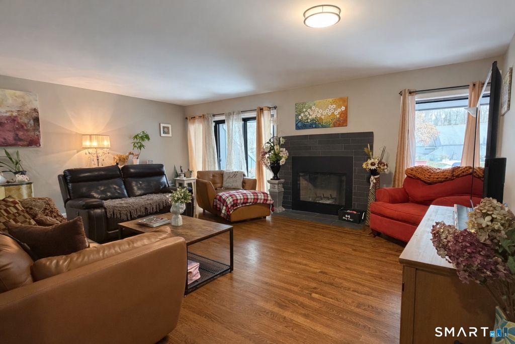 Welcome to Plymouth Colony, one of Branford's most desirable shoreline communities. This exceptional 3-bedroom, 1.5-bath end unit features a beautifully appointed fireplace, gleaming hardwood floors and an expansive deck that seamlessly extends the living space outdoors. The 2024 kitchen is a standout, featuring granite countertops, custom cabinetry with soft-close doors and carefully designed storage solutions that combine style with functionality. The fully renovated lower level provides flexible space for a home office, fitness studio, or media room. Recent mechanical upgrades include a new washer and dryer (2025), new HVAC system (2025), and sump pump (2025), ensuring peace of mind for years to come. Set within a tranquil, wooded setting and just moments from the community pool, this turnkey residence offers effortless access to beaches, marinas, shopping, dining, major highways, and rail service. An ideal location for commuting between New York and Boston.