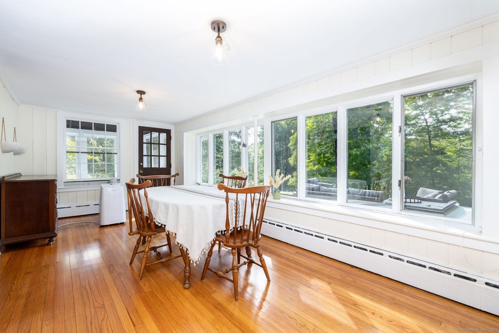 Welcome to 154 Wilbur Ln, a truly distinctive property that sets itself apart from the rest providing over four and half acres of privacy. This home boasts five spacious bedrooms and two full baths, along with a large versatile studio or den that provides additional options for your needs. As you enter, a convenient mudroom is to the left and down the hall leads you into the kitchen where you will be greeted with lots of natural light and gorgeous windows and skylights. From the kitchen enter the dining room, where a full wall of windows fills the space with scenic views. It's perfect for both intimate dinners and lively gatherings. After you enjoy your dinner step out onto the deck to watch the sun go down or access the screened in porch for those rainy evenings. The dining room leads to the expansive living room featuring a stunning fieldstone fireplace, a lofty cathedral ceiling with wooden beams, a built-in bookcase and a large sliding glass door. Go up to the second floor with one of the two access points to discover the primary bedroom that has wall to wall windows, a walk-in cedar closet and is complete with a full bath and a claw tub.The attached barn provides ample storage with five garage bays, two horse box stalls, and a walk-up attic.Lots of open space above the garage. This exceptional property, with its unique features and flexible layout, is perfect for a variety of lifestyles.