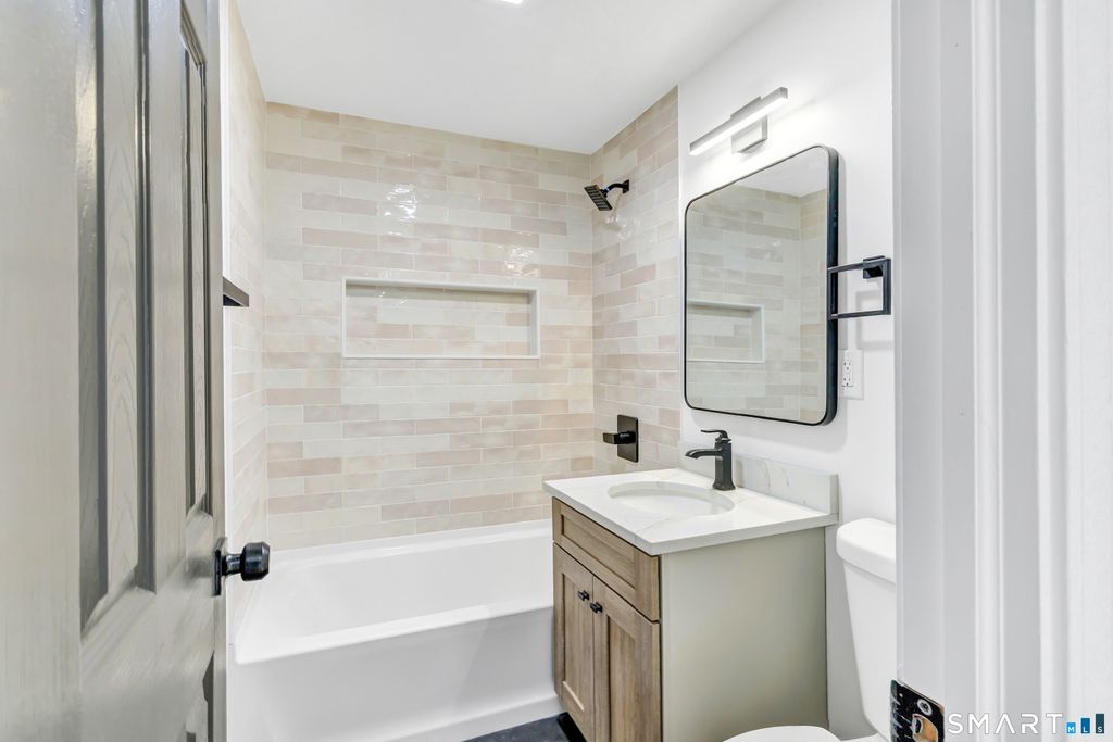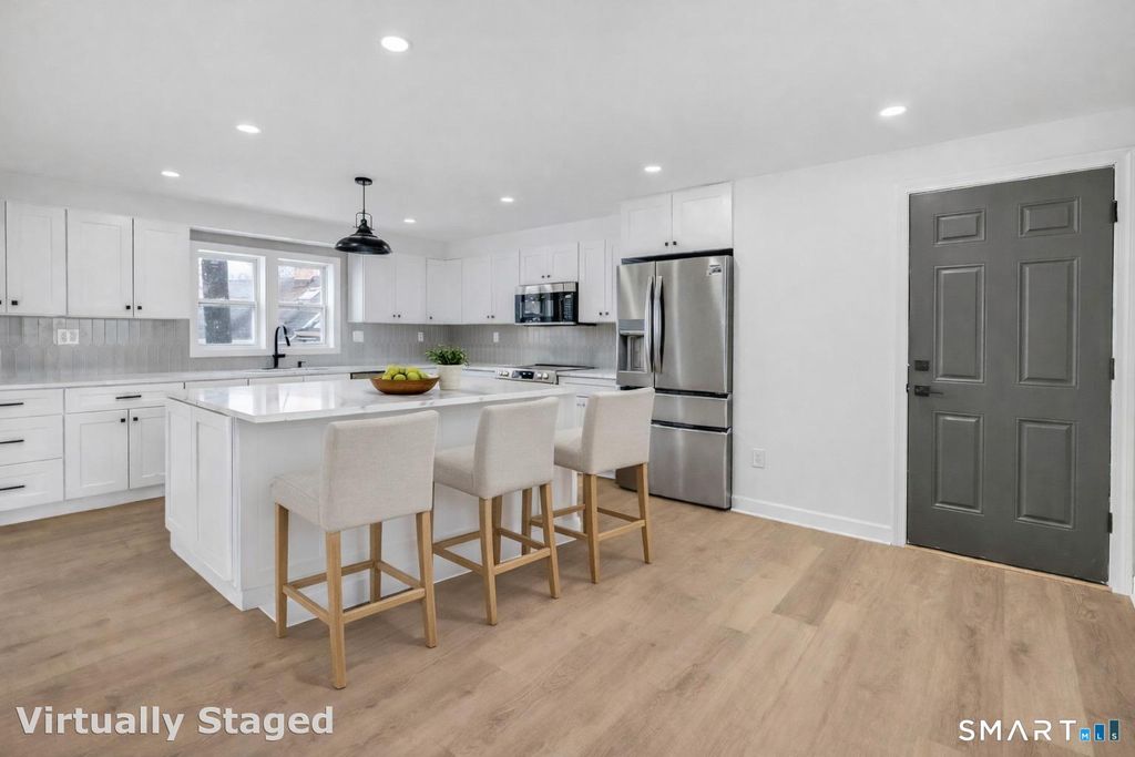 Welcome home to this move in ready Colonial located in the desirable Northern Milford Mathewson area. The main level offers an open floor plan with a fully remodeled kitchen featuring new cabinetry, oversized island, stainless steel appliances, recessed lighting, and seamless flow into the dining area with sliders leading to a private backyard, perfect for everyday living and entertaining. The living room provides warmth and character with a wood burning fireplace. Two main level bedrooms are served by a completely renovated full bathroom. The upper level includes an additional bedroom, a remodeled full bathroom with tiled shower, a dedicated laundry room with new washer and dryer, and a spacious primary suite with cathedral ceilings, new red oak hardwood floors, a beautifully remodeled bathroom, and a versatile area ideal for a home office or an exceptional walk in closet. Additional improvements include interior and exterior painting completed in 2026, new sliding glass door, and new front and rear walkways with decorative pillars. One car garage with ample storage and potential to be converted to a two car garage. Conveniently located close to schools and offering easy access to major highways, shopping, dining, and downtown Milford. A truly move in ready home you won't want to miss.
