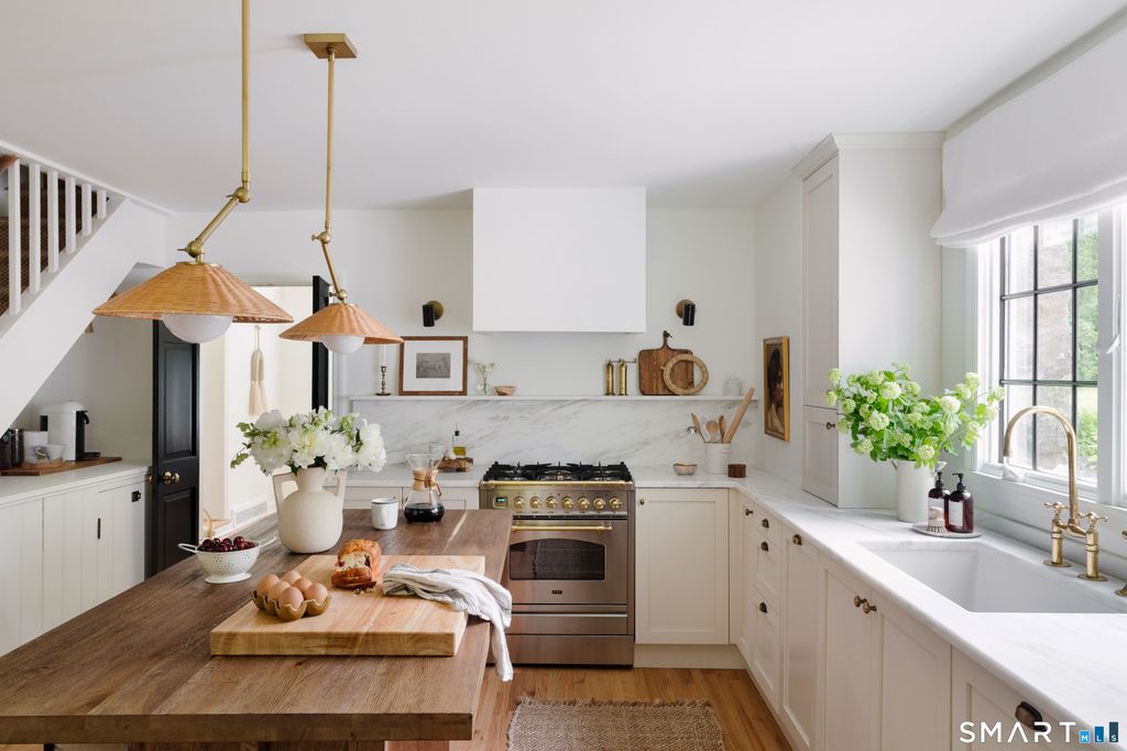 Quietly tucked away on ~2.5 private acres in the highly coveted Cranbury neighborhood, this stunning colonial estate offers an unparalleled lifestyle. Located just minutes from the heart of Norwalk, Westport, New Canaan and Wilton this one-of-a-kind home is a rare gem. Completely transformed inside and out by a visionary designer and architect duo, this home has been featured in countless magazines - and it shows. Every inch has been reimagined with intention, craftsmanship, and elevated style. This meticulously updated residence boasts 4 spacious bedrooms, with 3.5 stunning bathrooms, providing luxury and privacy. Every detail has been considered - from the beautifully appointed baths, to the luxurious chefs kitchen (with the most incredible Imperial Danby Marble), to the whole new house systems, all the way to the brand new roofs on home & structures + the finest lighting fixtures... just to name a few! Step outside to your own private oasis. Manicured grounds, mature plantings, and lush flower beds create a storybook setting. The fully updated sparkling pool, brand new bluestone patio and classic cedar split-rail fencing complete this idyllic retreat. Multiple outbuildings provide exceptional flexibility - ideal home office, artist studio, gym, hangout space, or potential pool house. The possibilities are endless. This home is the perfect combination of luxury, comfort, & convenience, and it's ready for you to move in & enjoy!