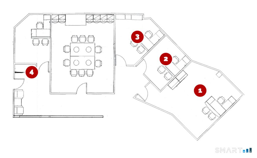 Top-level office space with shared kitchen and conference room. Delivered vacant and available in it's entirety of 1,447 SF for sale or for lease, or as individual office suites. The Executive Pavilion at 90 Grove Street is a highly regarded professional office building located in the heart of downtown Ridgefield. Just steps from Main Street, the property offers walkable access to premier restaurants, cafes, banks, retail boutiques, and municipal services, creating an exceptional environment for both tenants and clients. The building features elevator access, professional property management, and an on-site fitness center, providing convenience and added value for occupants. A diverse and established tenant mix including professional services, consultants, medical providers, and boutique firms, creates a dynamic and collaborative business atmosphere. With its central location, strong tenant community, quality amenities, and reputation as one of Ridgefield's premier business addresses, The Executive Pavilion offers an ideal setting for companies seeking both visibility and professionalism in downtown Ridgefield.