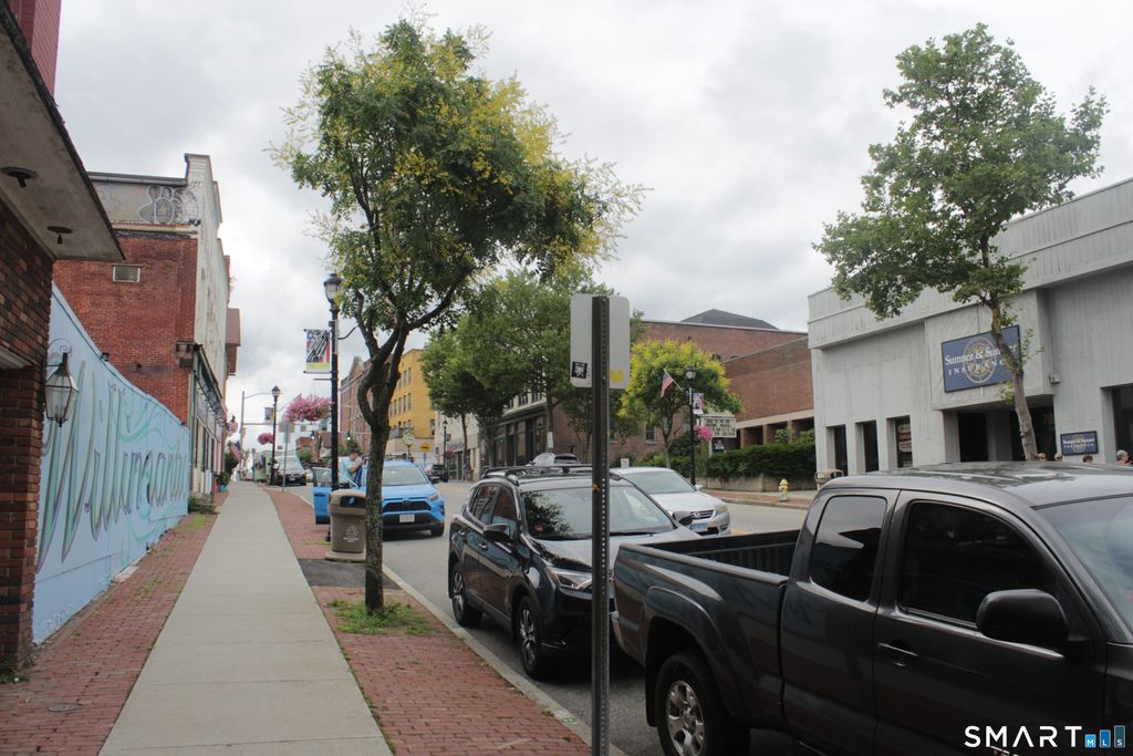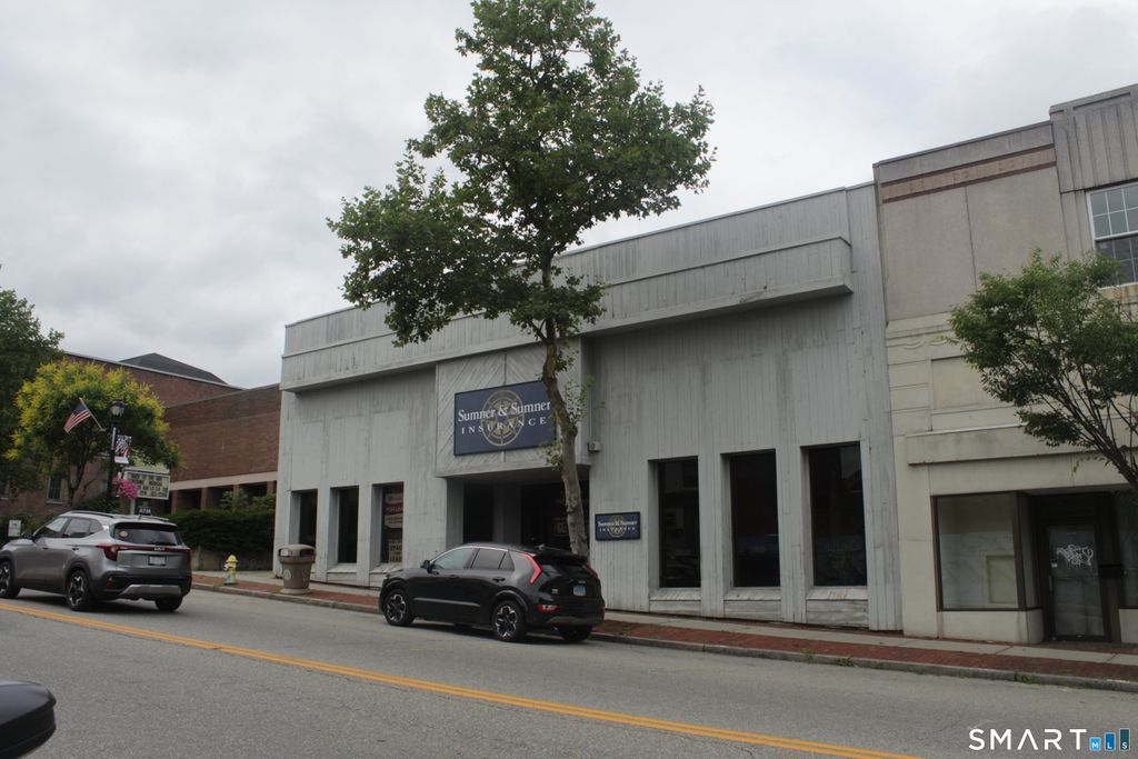 Downtown office or potential retail building for sale in Windham CT's Willimantic CDP. Centrally and visibly located on busy Main Street (Rt. 66), alongside other commercial properties in a rapidly developing area. Minutes from Eastern Connecticut State University and UConn. Formerly an insurance office, the property could be adapted for other commercial uses. The building features airy first-floor offices with skylights and sunny storefront-style windows, a partial second floor with offices and storage space, and a partially finished basement. Great opportunity for an investor/developer or an owner-occupant business serving customers in eastern Connecticut.