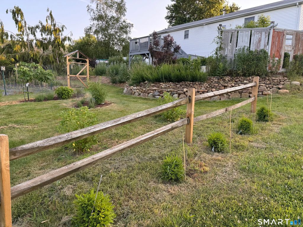 From the moment you arrive, you'll appreciate the space and flexibility this property offers - inside and out. A bright 3-season sunroom welcomes you in and creates a functional entry. Energy efficiency stands out with owned ground-mounted solar panels plus additional leased roof panels, helping keep electric costs impressively low. The kitchen offers abundant cabinetry and generous counter space, flowing nicely into the dining area and out to the deck - great for everyday living and entertaining. The primary bedroom features a spacious walk-in closet with built-ins (formerly the third bedroom). The second bedroom includes a large, organized closet and its own half bath. The lower level is currently being used as bedrooms, offering flexible space for a den, office, guest area, or additional living space. You'll also find the laundry area and another half bath downstairs. With two half baths already in place, there's strong potential to convert to full baths, adding even more value to this versatile floor plan. An oversized attached garage plus a 14x28 Kloter Farms shed/garage provide excellent storage and workspace. Set on 3.7 open acres with fenced garden areas, greenhouse, retaining walls, pond, lavender plot, blueberries, grapes, apple trees, and a roadside farmstand setup, the property offers endless possibilities. Roughly 20 minutes to UConn and just 5 minutes to I-84 for an easy commute to Hartford or Sturbridge, MA.